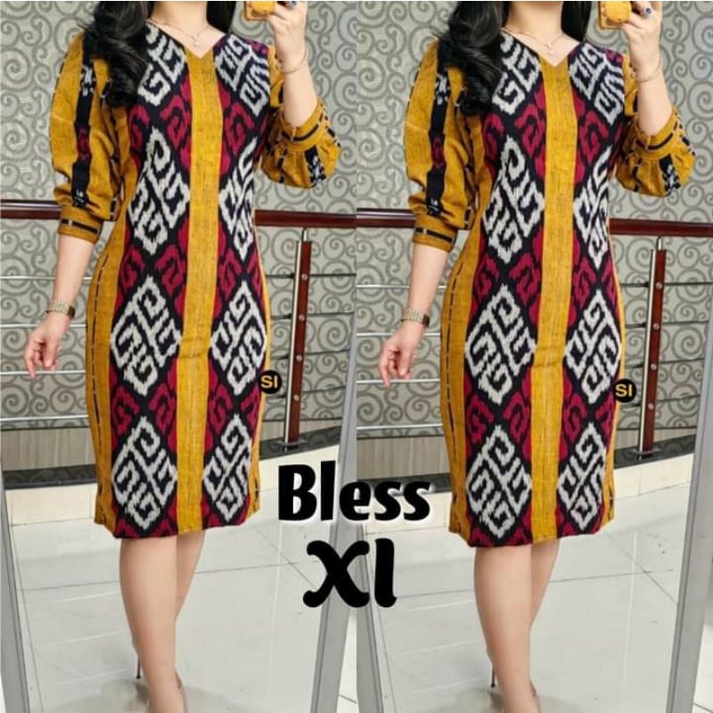 BAJU DRESS TENUN SPAN ETNIK WANITA JEPARA WARNA KUNING KOMBINASI MERAH