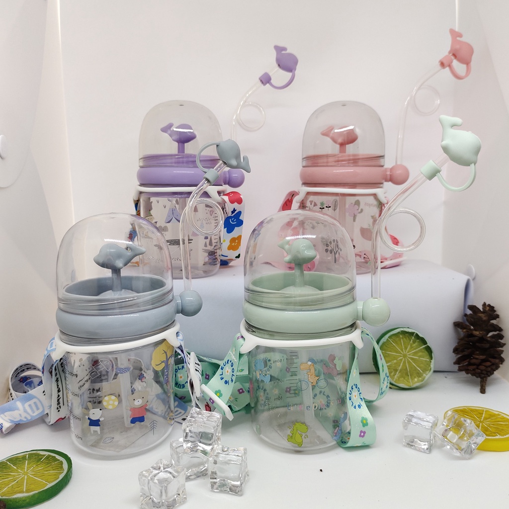 ABS Botol Minum Lumba-Lumba Air Mancur Sedotan 250ml BPA FREE