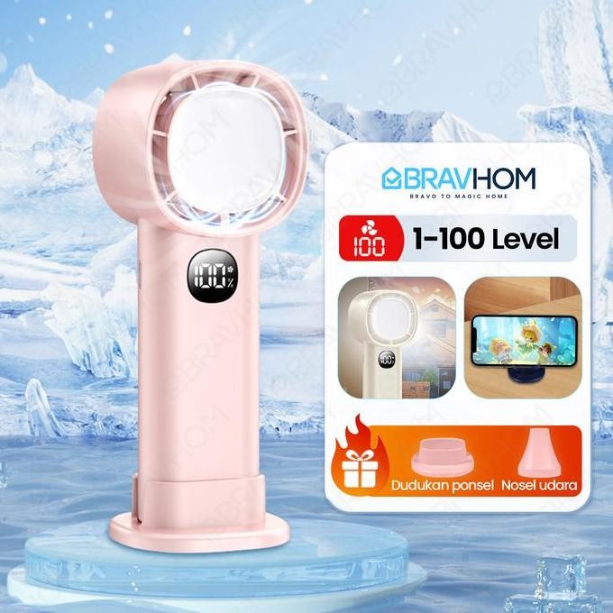 (COD)Bravhom Kipas Angin Turbo Portable LED Display 100 Gear 4000mAh Lampu Malam Dudukan kipas kerajaan EA