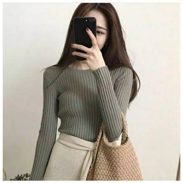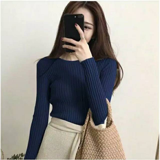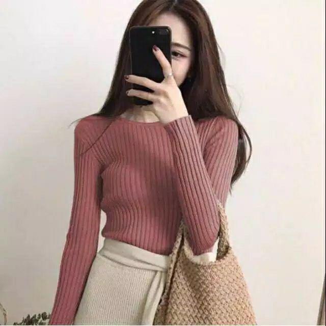Blouse adzkia rajut 0-neck_atasan sweater rajut