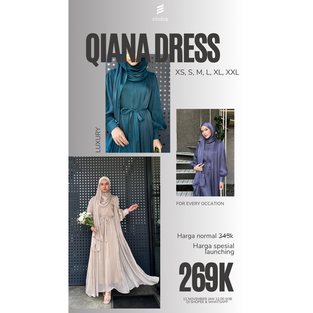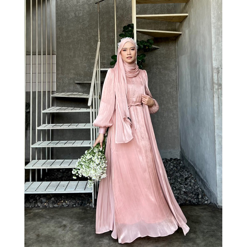 Elmiza - Qiana Dress Bahan Shimmer Premium Dress Wanita Terbaru Elegan Mewah Pesta Lebaran