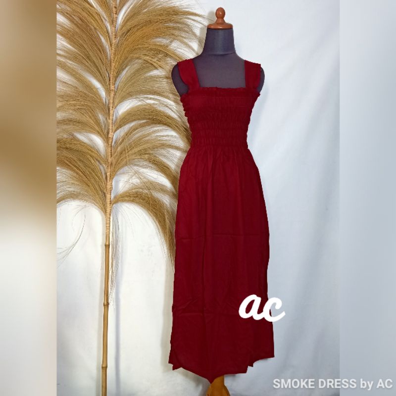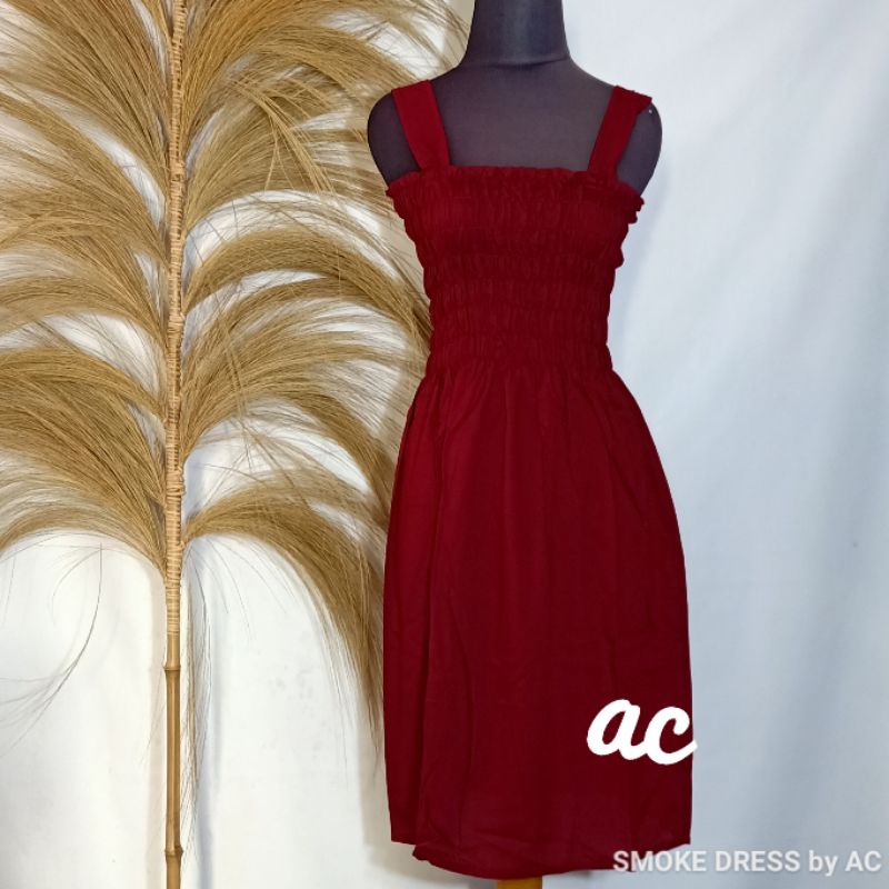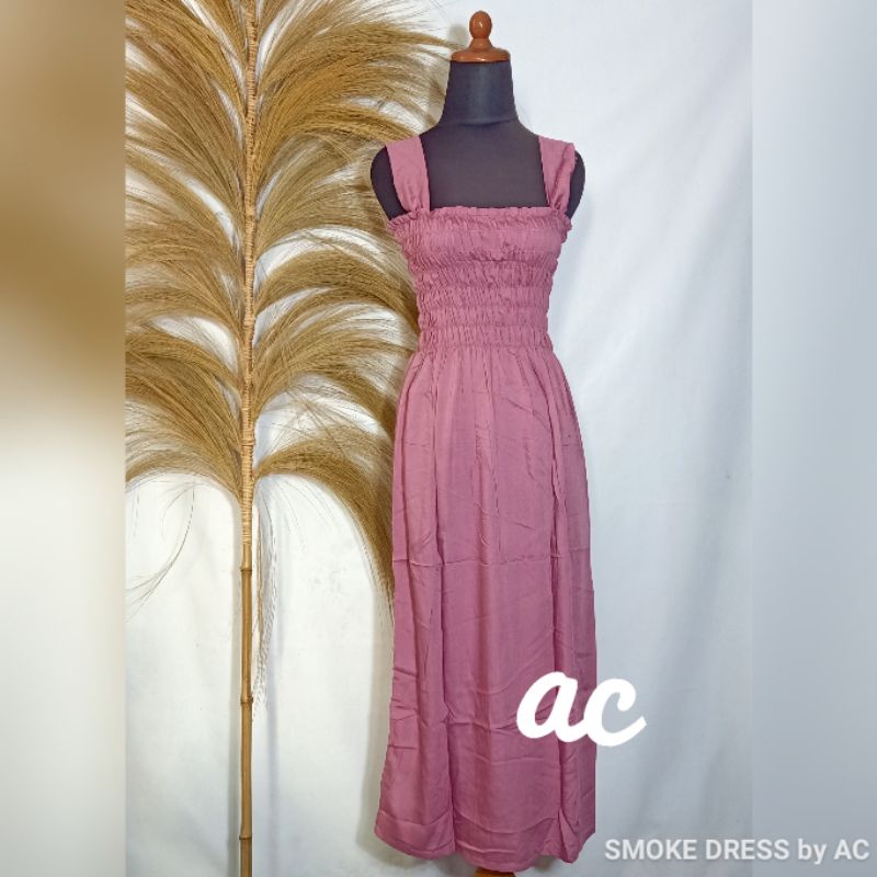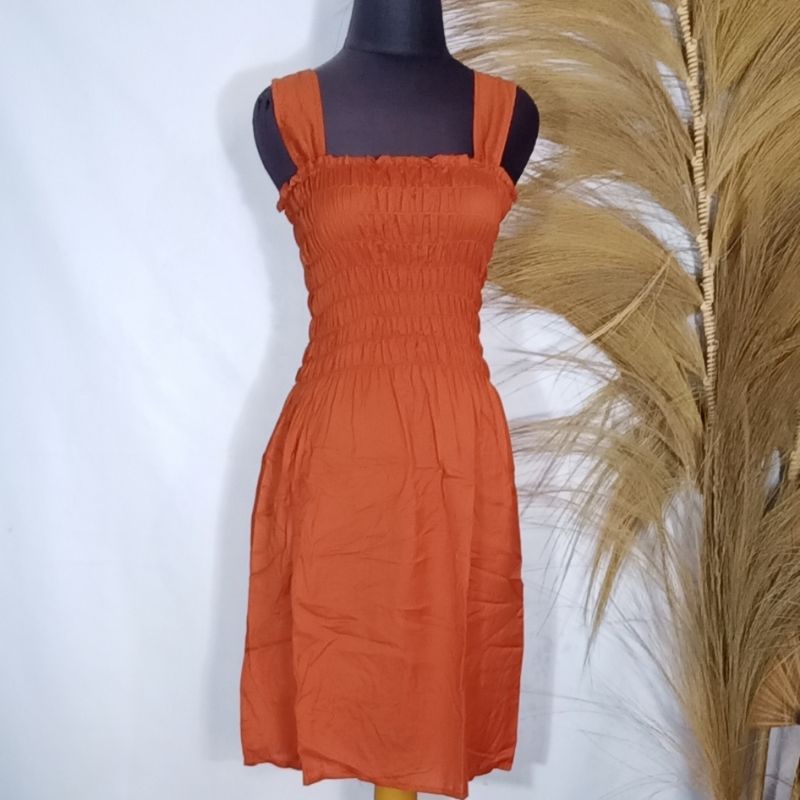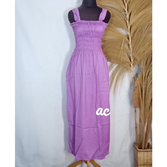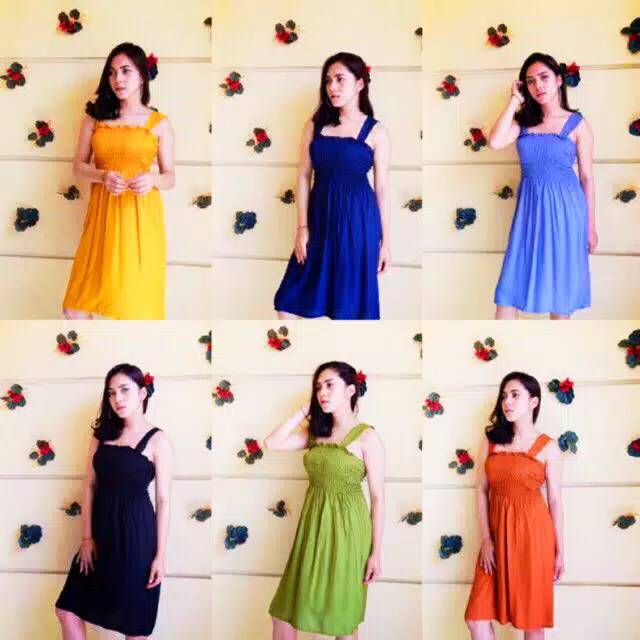 SMOCK DRESS KERUT DADA POLOS PENDEK DAN PANJANG