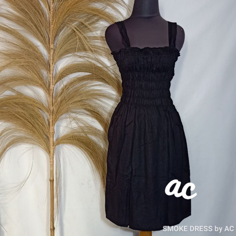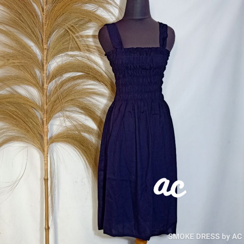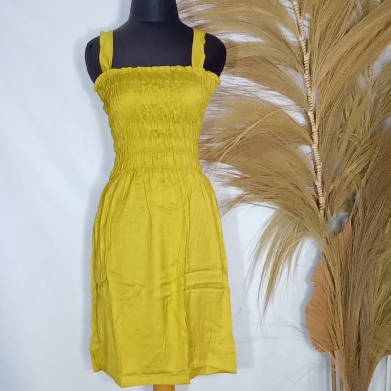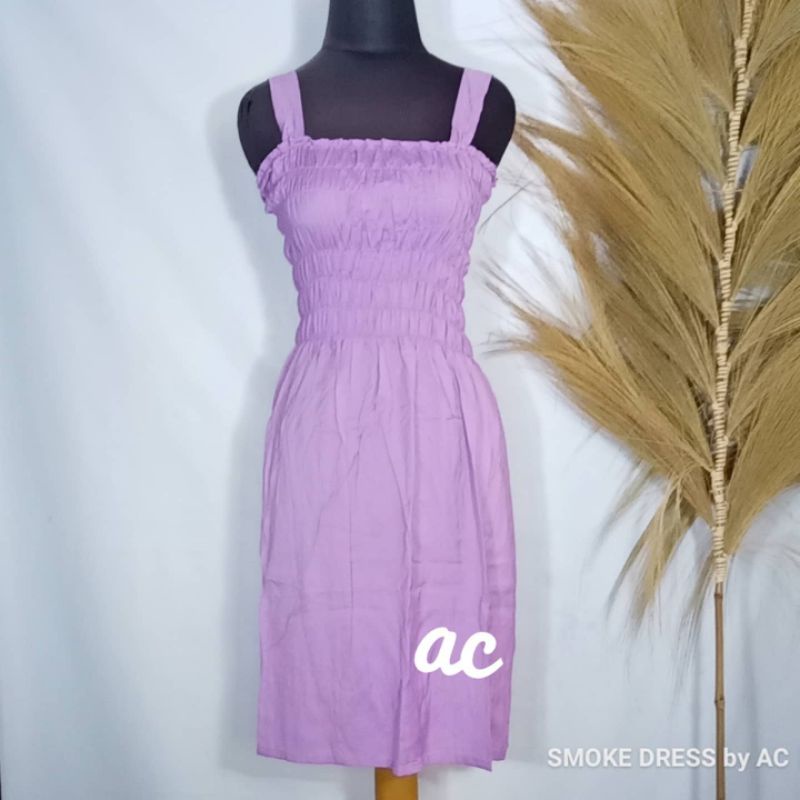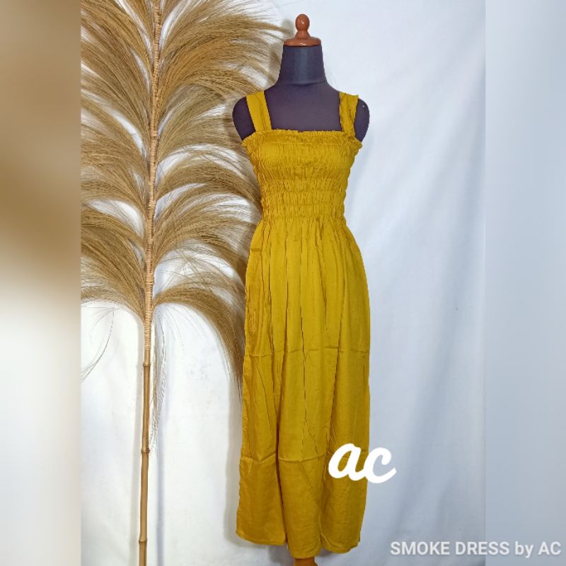 SMOCK DRESS KERUT DADA POLOS PENDEK DAN PANJANG