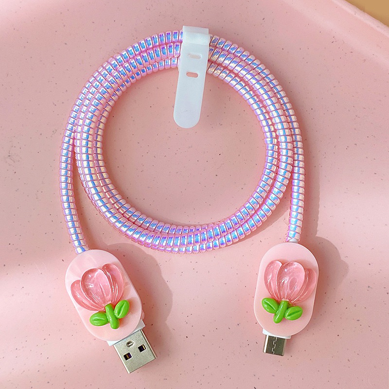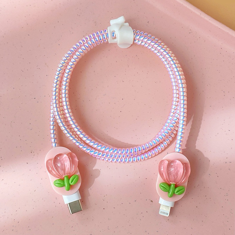 Bear and Flower Pelindung Kabel Cas HP Lucu Charger Cable Protector