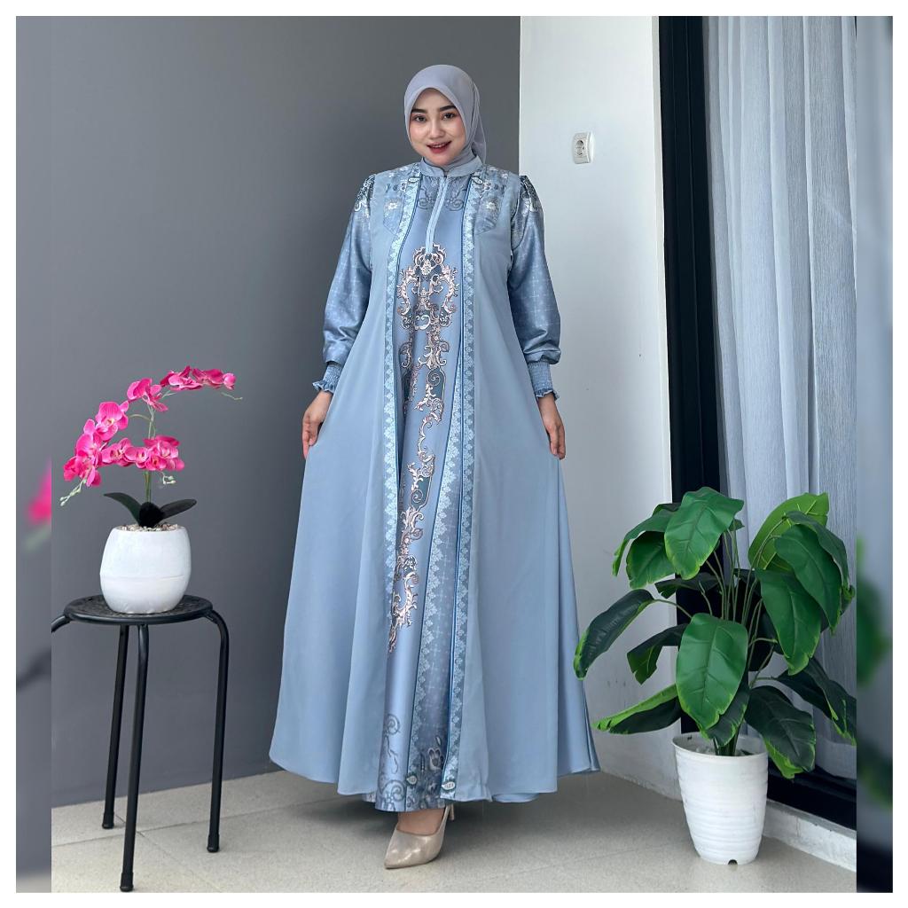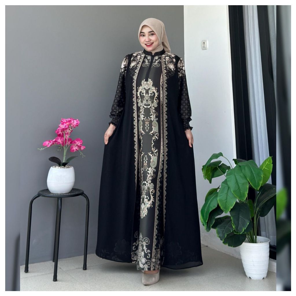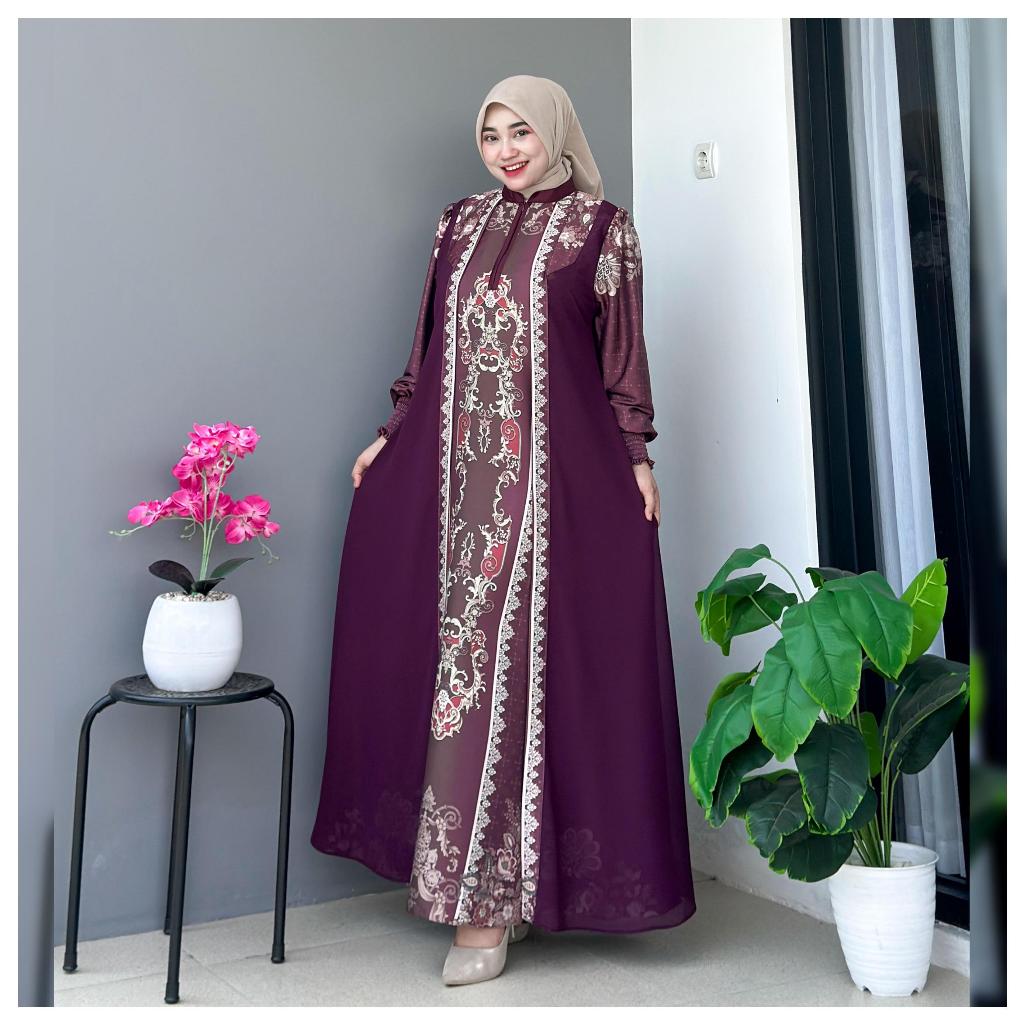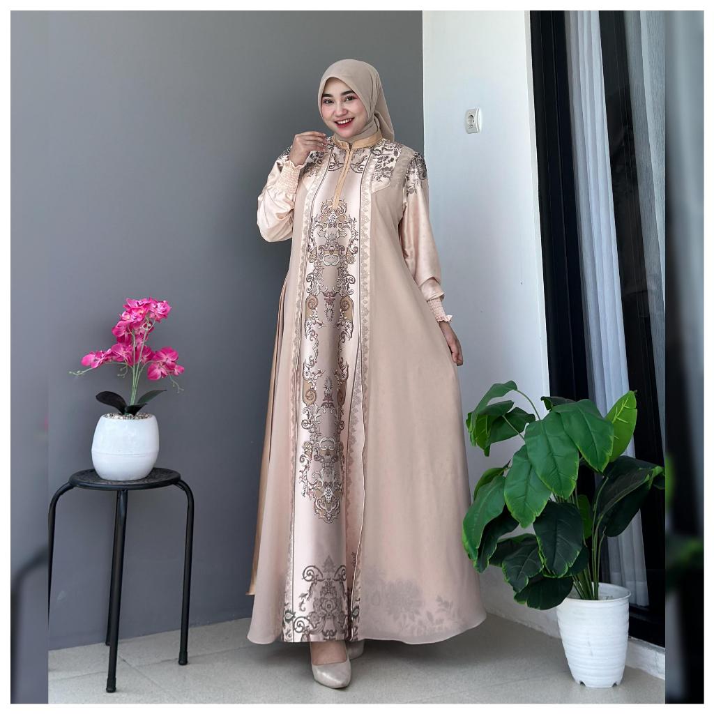 SAVINA DRESS Motif Silk Premium x Ceruty Polos Busana Muslim Wanita Dewasa Remaja by Es-Ha Scraf