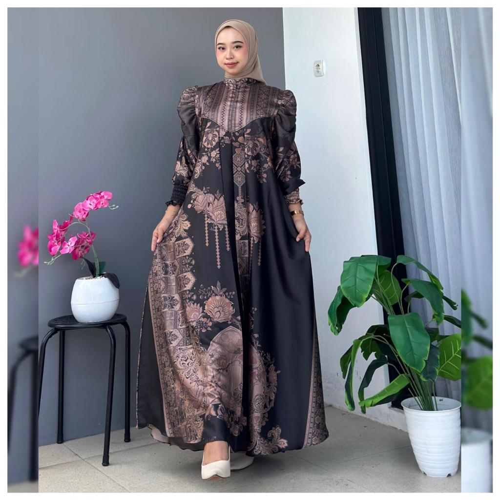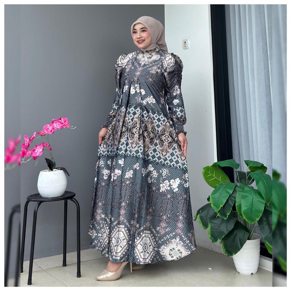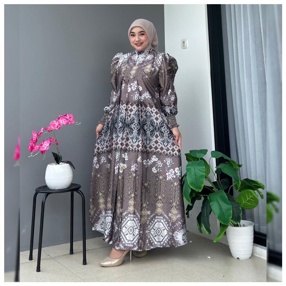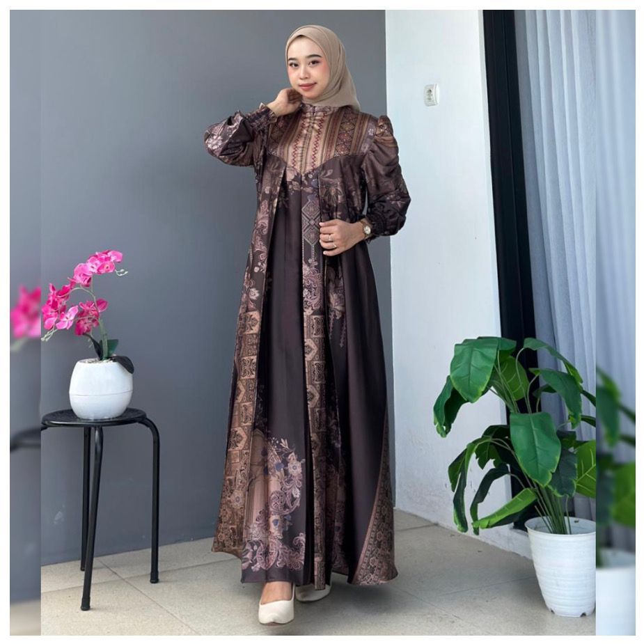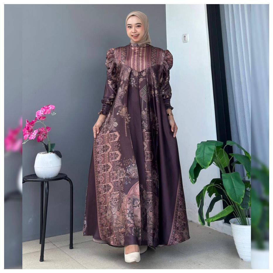 SHEERINA DRESS Motif Silk Premium Busana Muslim Wanita Dewasa Remaja by Es-Ha Scraf