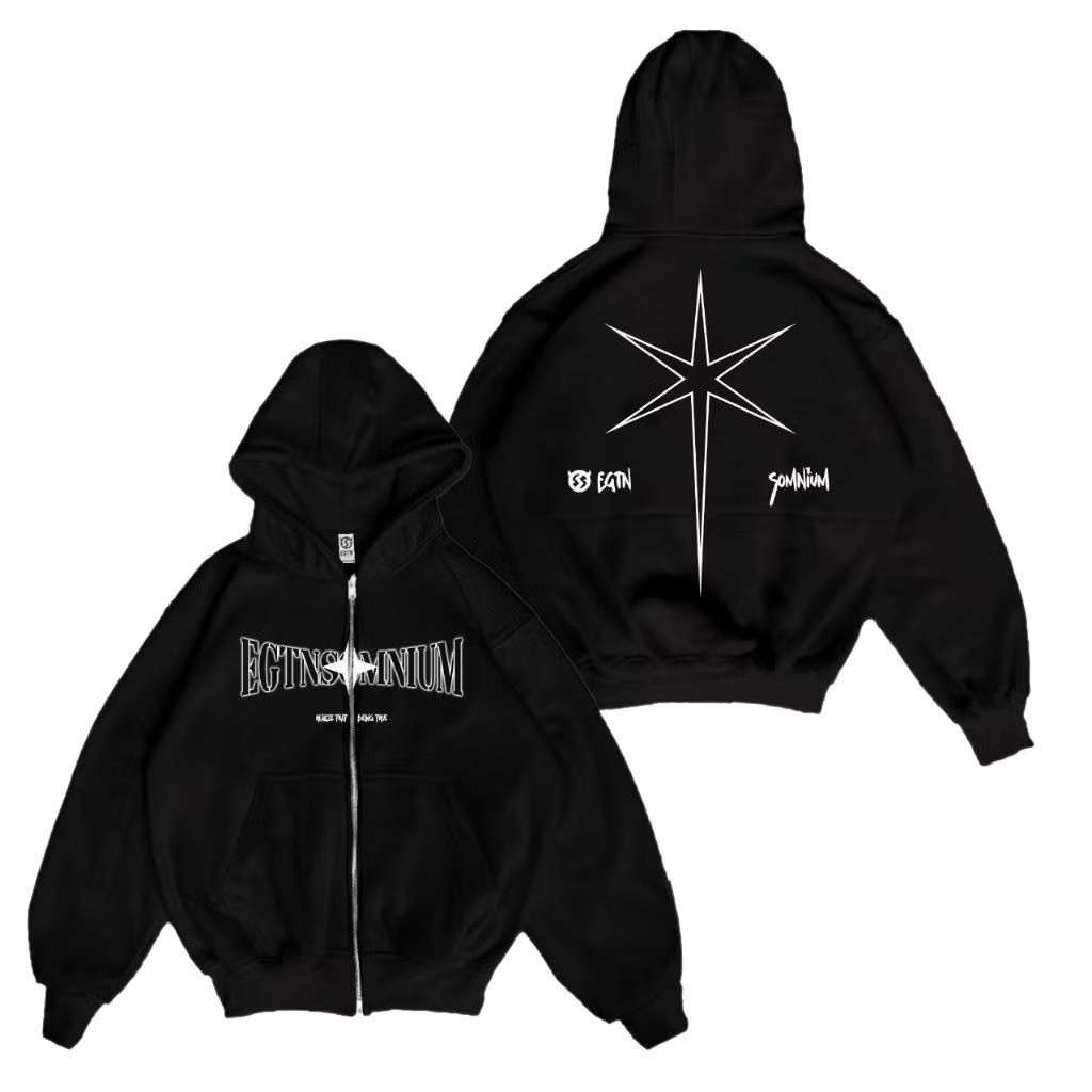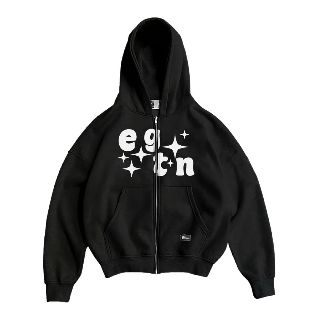 TANS - Hoodie Boxy Zipper Meteor Hitam Starboy Pria Wanita Oversize