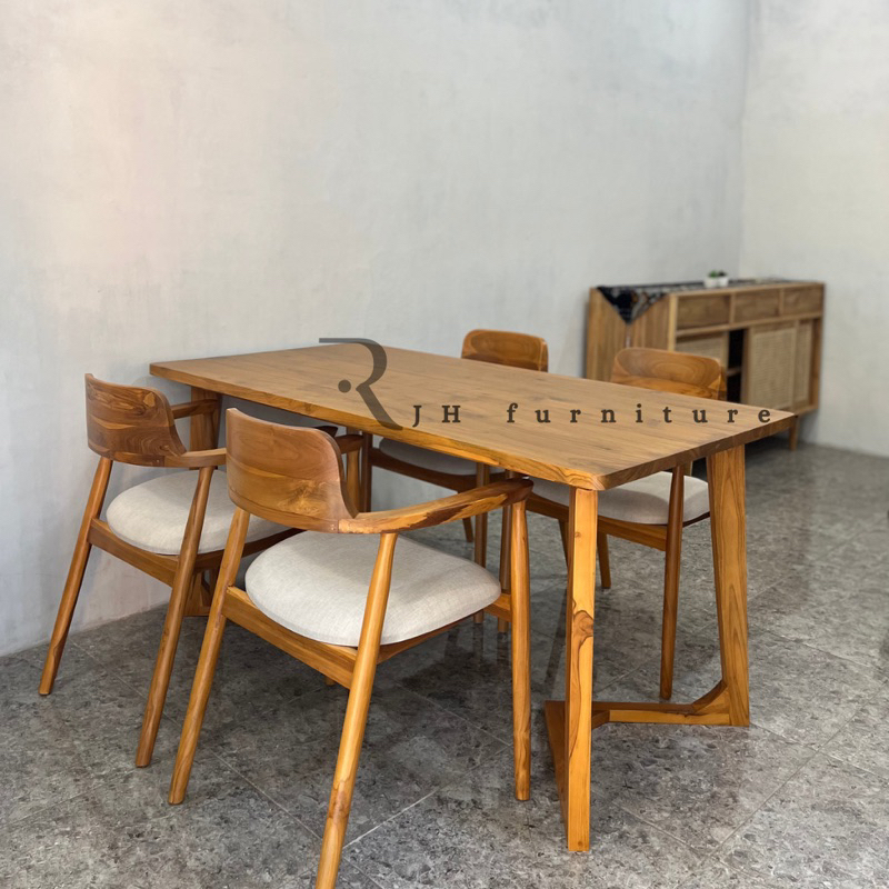 KURSI MAKAN K4, MEJA MAKAN 160CM, KURSI MAKAN MINIMALIS, MEJA MAKAN KAYU JATI, MEUBEL JEPARA MURAH, MEJA MAKAN HEROSIMA