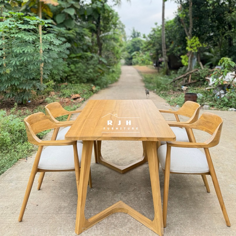 DINING SET MEJA MAKAN HEROSIMA K4, KURSI MAKAN KAYU JATI K4, TOP TABLE 3CM
