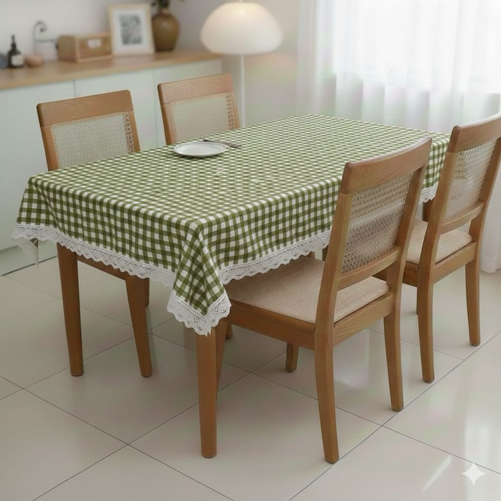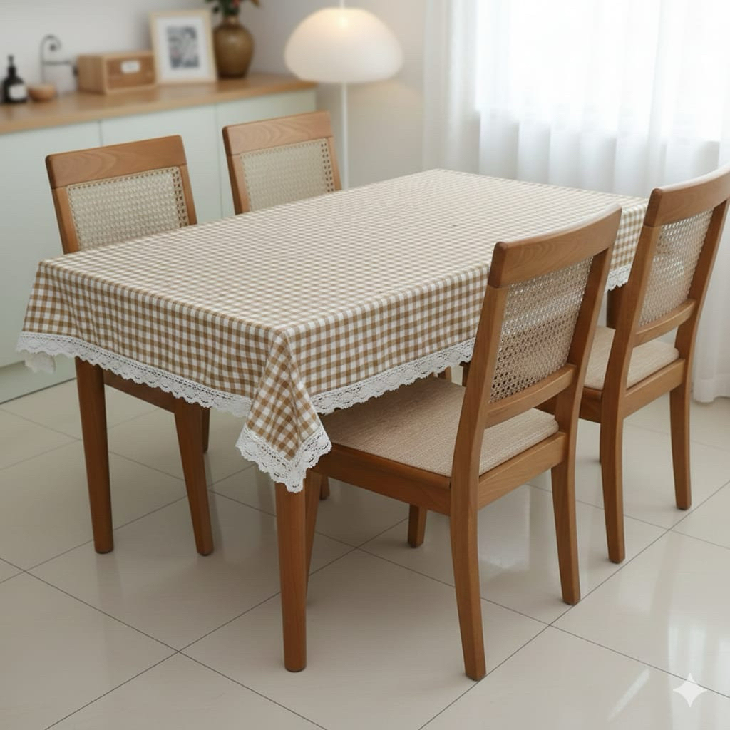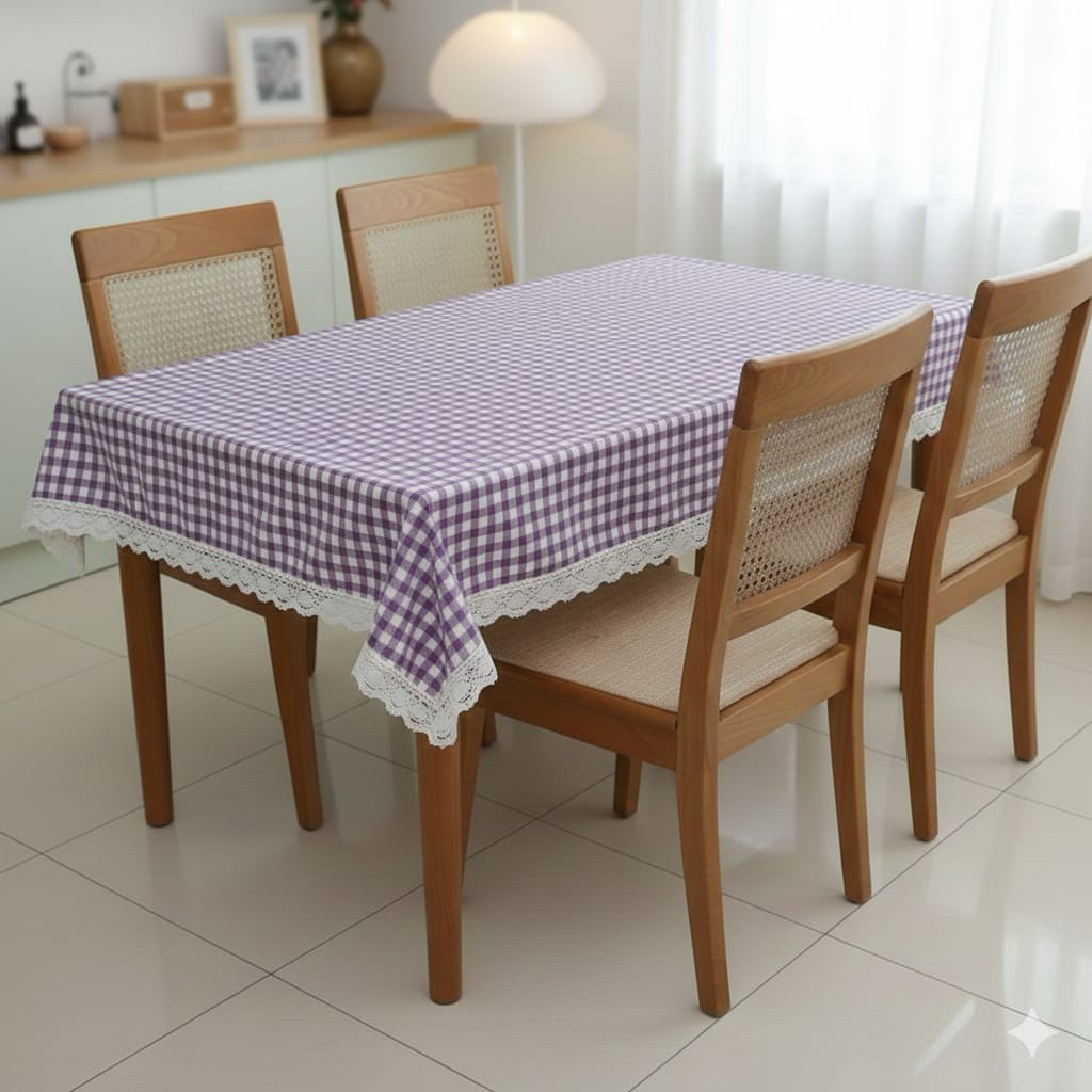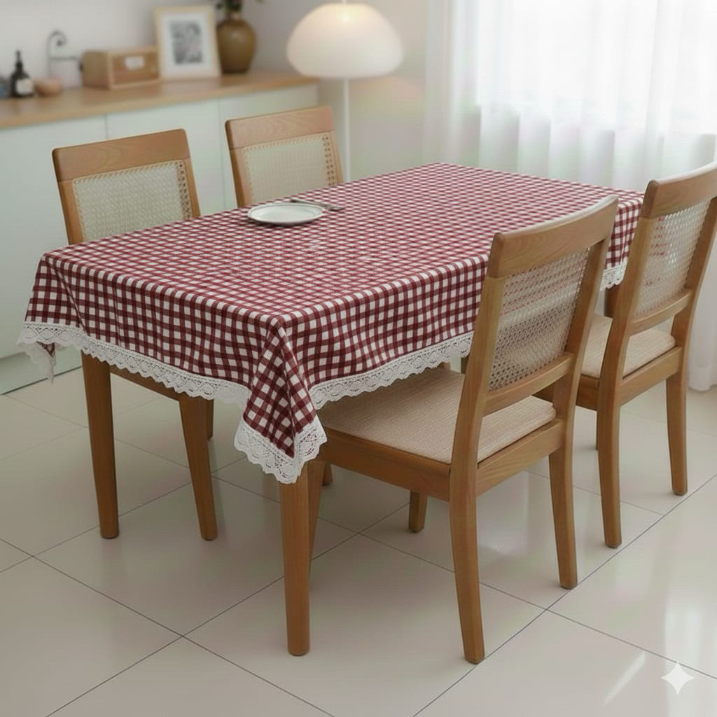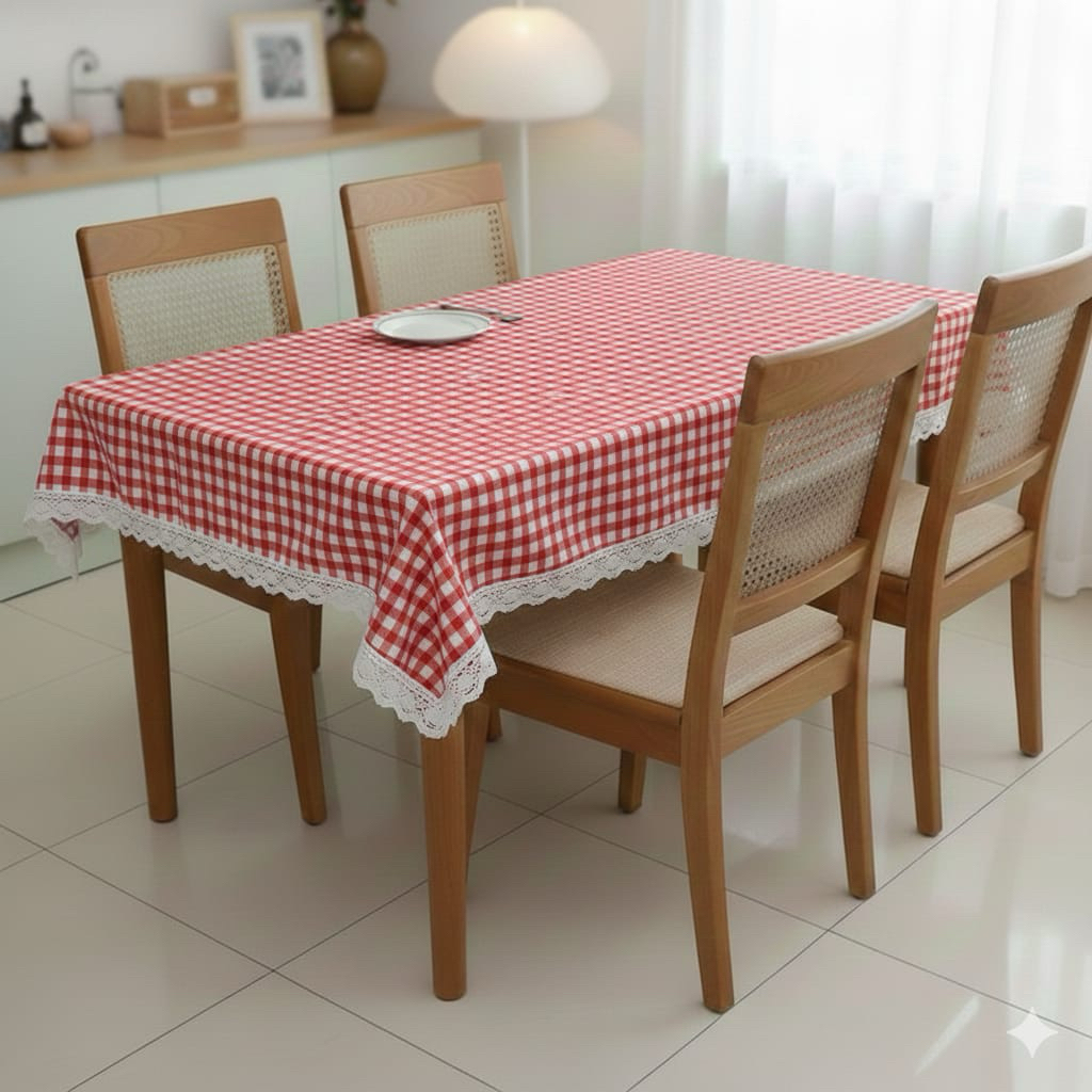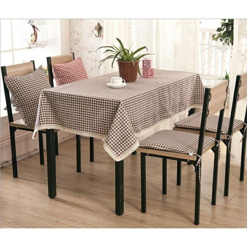 Taplak meja makan mottf kotak dengan renda taplak meja besar ukuran 100/150/200/300