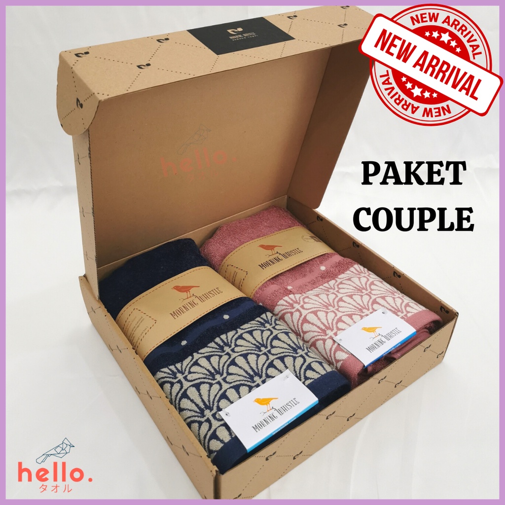 [PAKET HANDUK] HAMPERS LEBARAN Handuk Couple Morning Whistle Set - Gift Set Hello Towel