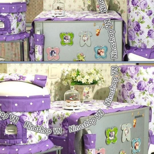Sarung Galon, Cover Kulkas, Tutup Kulkas Motif Shabby Ungu