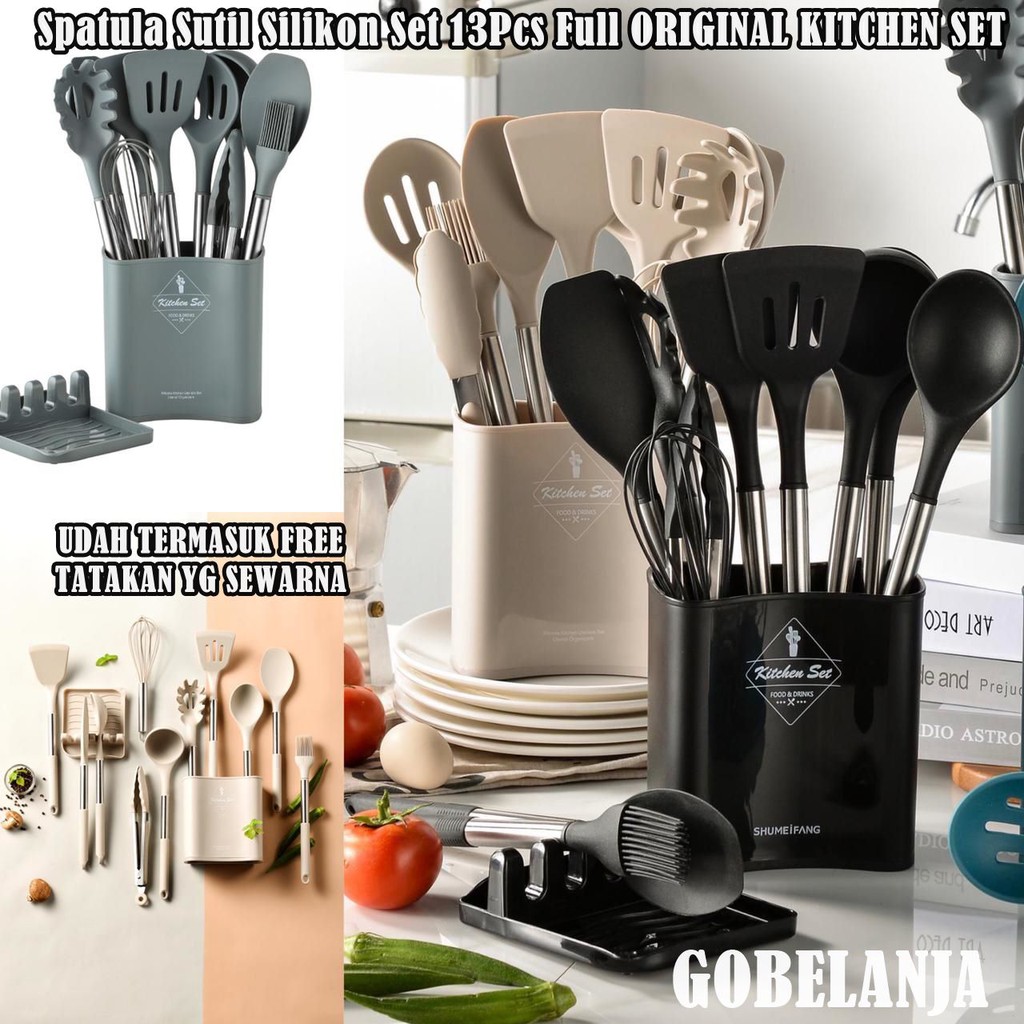 Utensil Bucket Silicone Set /Spatula Sutil Silikon Set 13Pcs Full ORIGINAL KITCHEN SET PREMIUM PR117