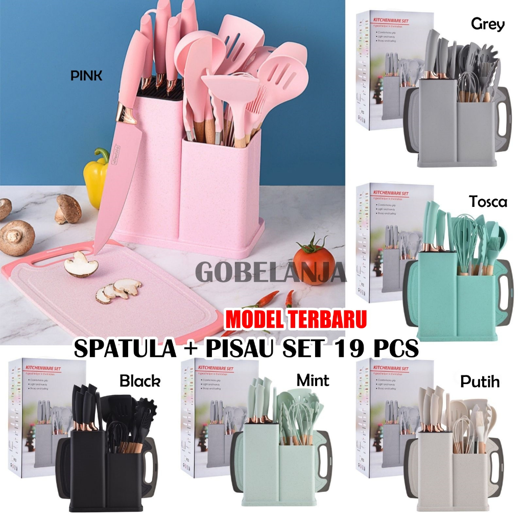 KITCHENWARE SET 19 PCS / SPATULA SILICONE KNIFES SET / SPATULA SILIKON SET / PISAU DAN GUNTING DAPUR SET TALENAN / ALAT MASAK SERBAGUNA / SUTIL SILIKON / PISAU DAPUR PR180