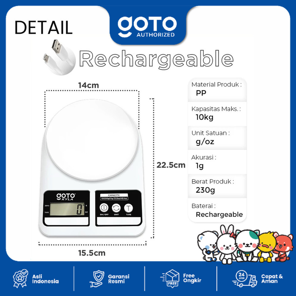 Goto Kyla Kitchen Scale Timbangan Bumbu Dapur Kue Digital Charge LED