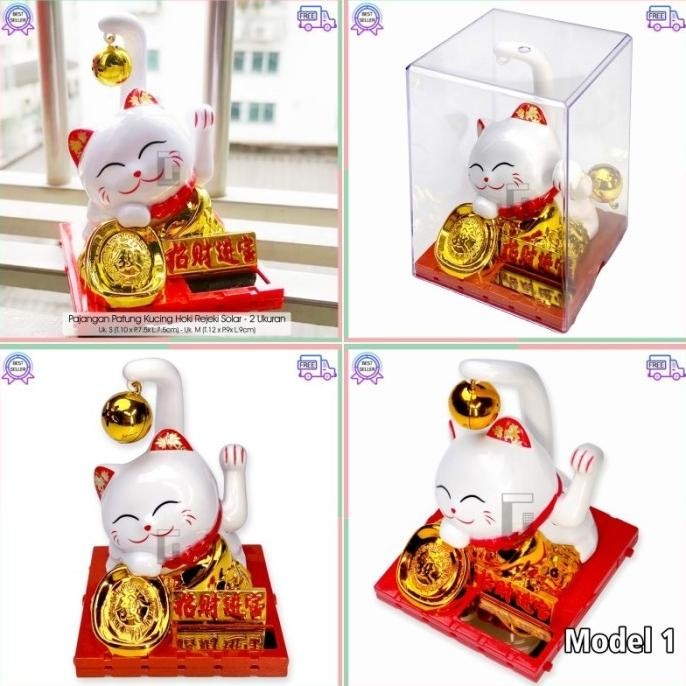 LKJ Boneka Kucing Hoki Lucky Cat Maneko Neki Solar Baterai Mobil Cina Lucu