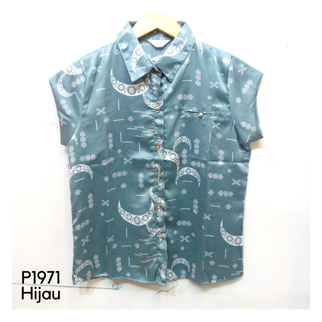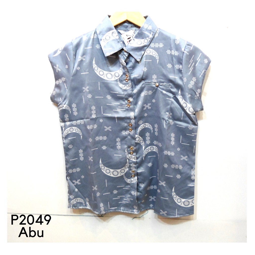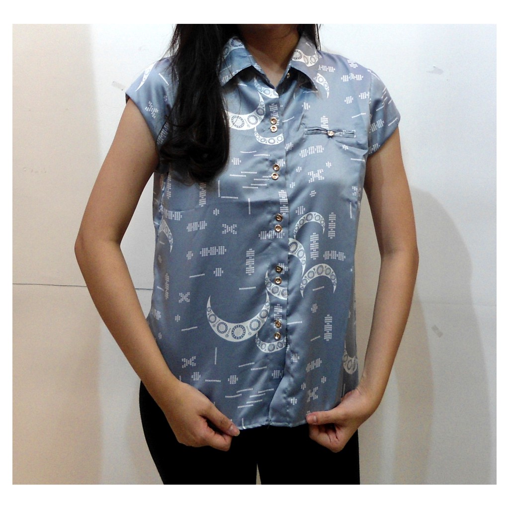 Baju Lebaran Unik Kemeja Tangan Pendek Wanita Motif Bulan Sabit Nyaman Dipakai - P2049
