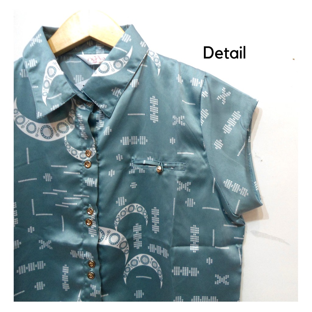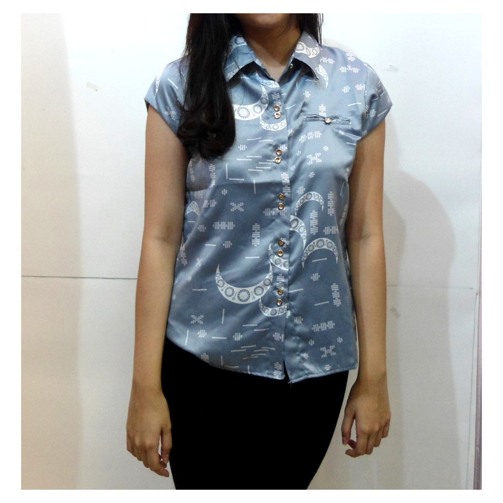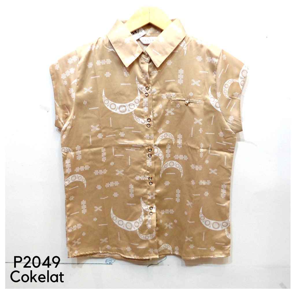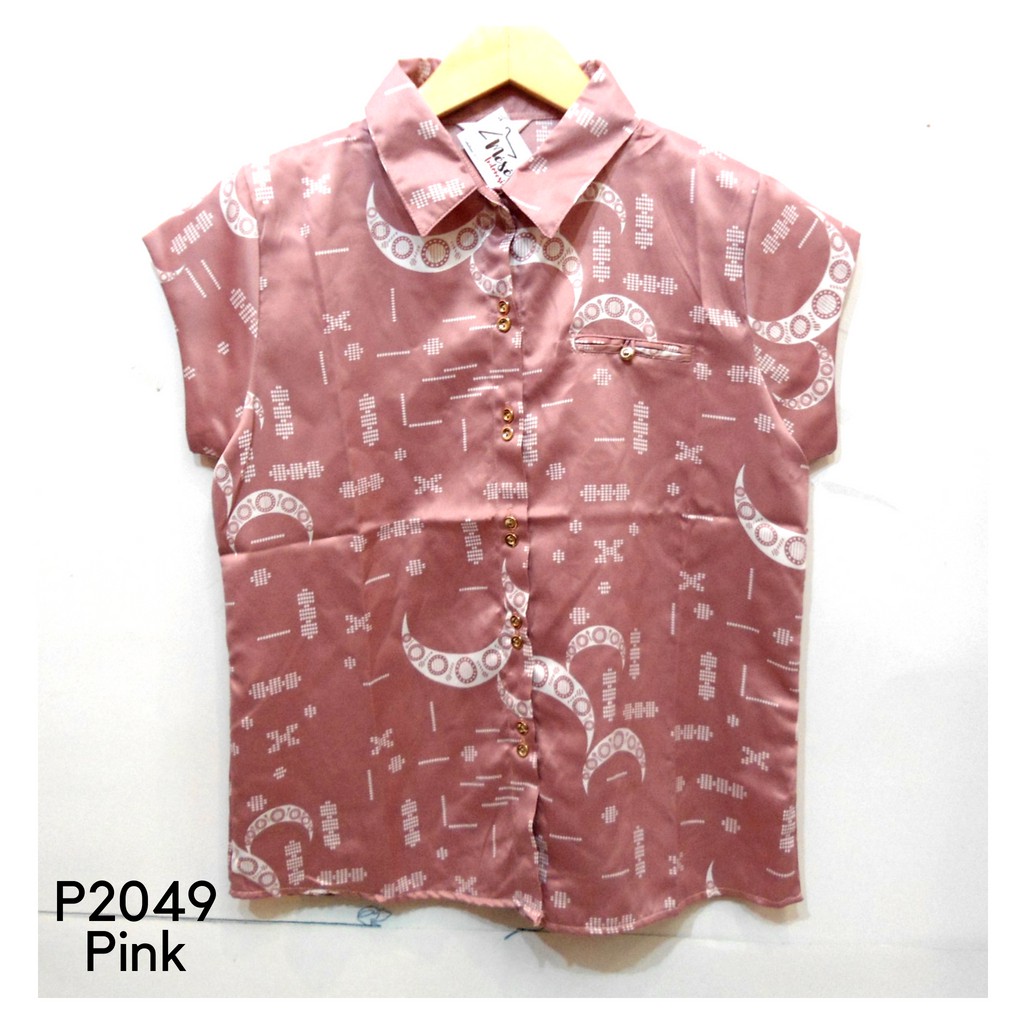 Baju Lebaran Unik Kemeja Tangan Pendek Wanita Motif Bulan Sabit Nyaman Dipakai - P2049