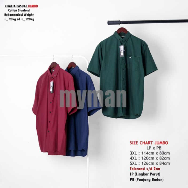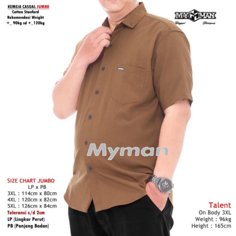 ❆ Kemeja casual/formal premium size jumbo 3XL-5XL lengan pendek polos original MY MAN ✾