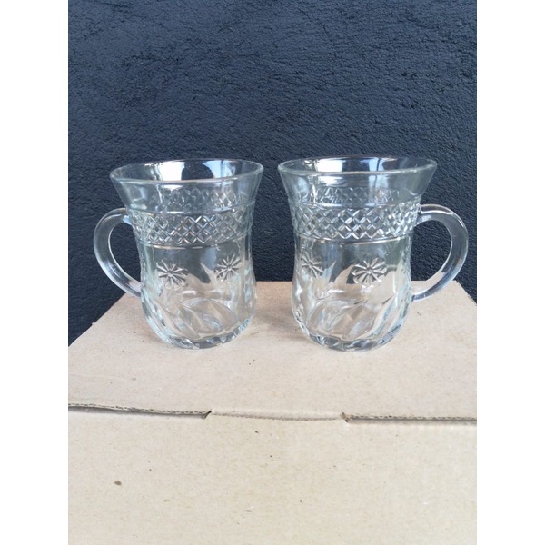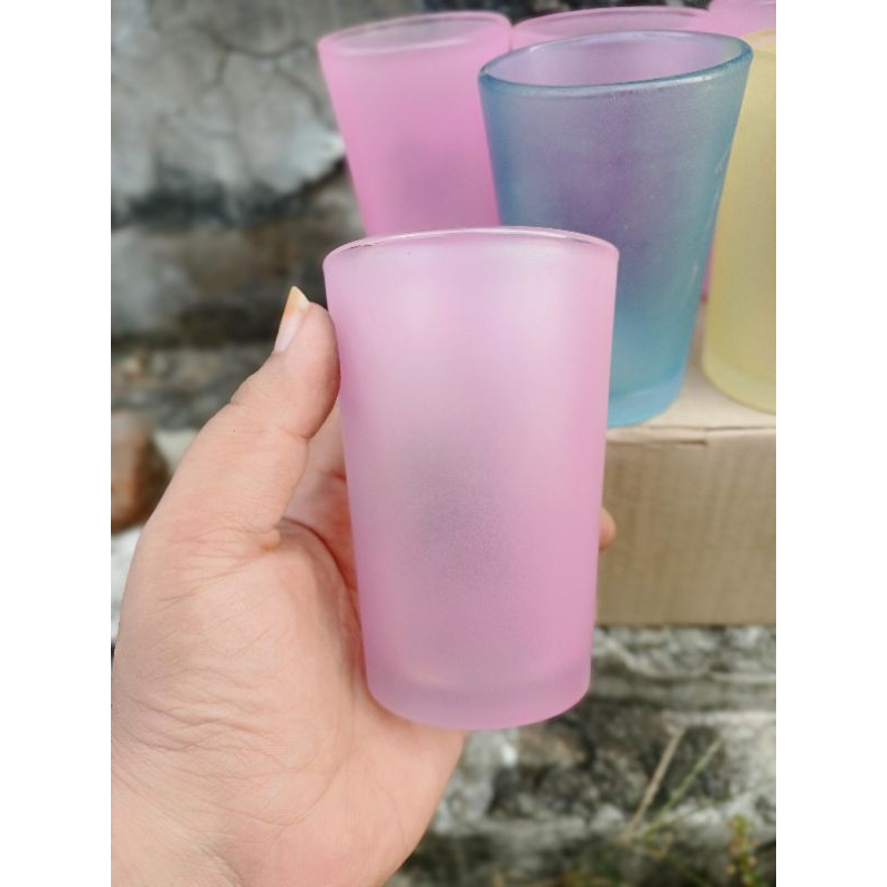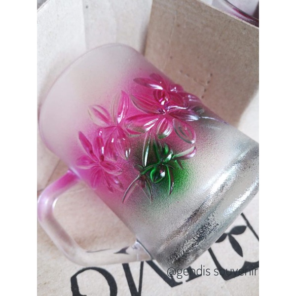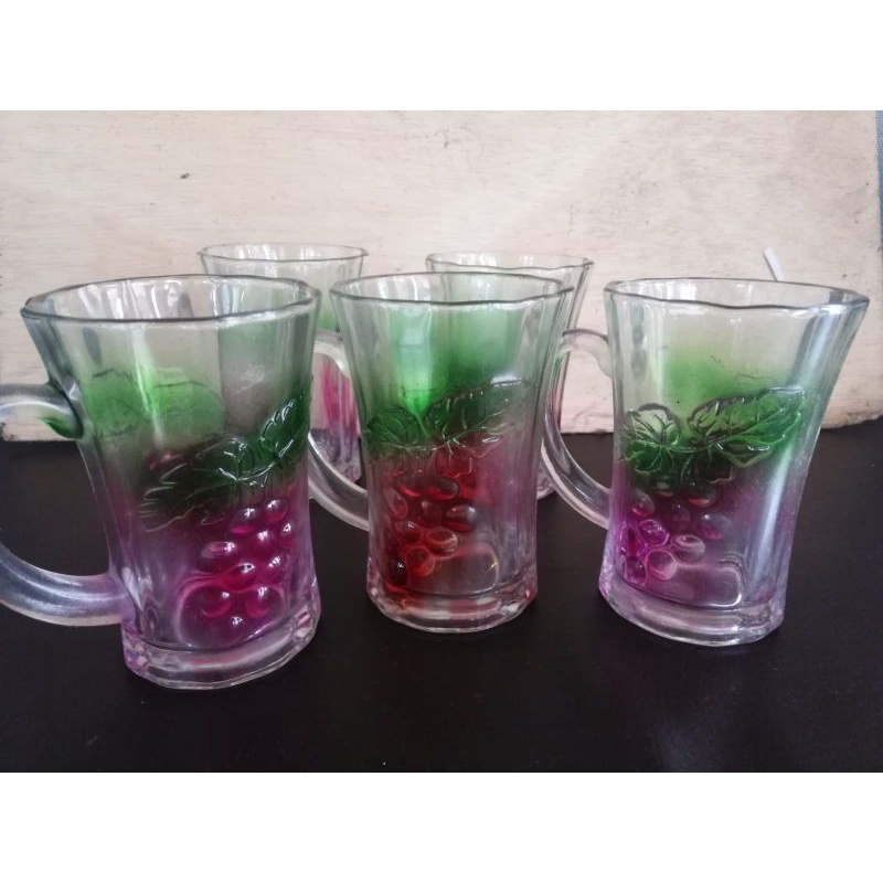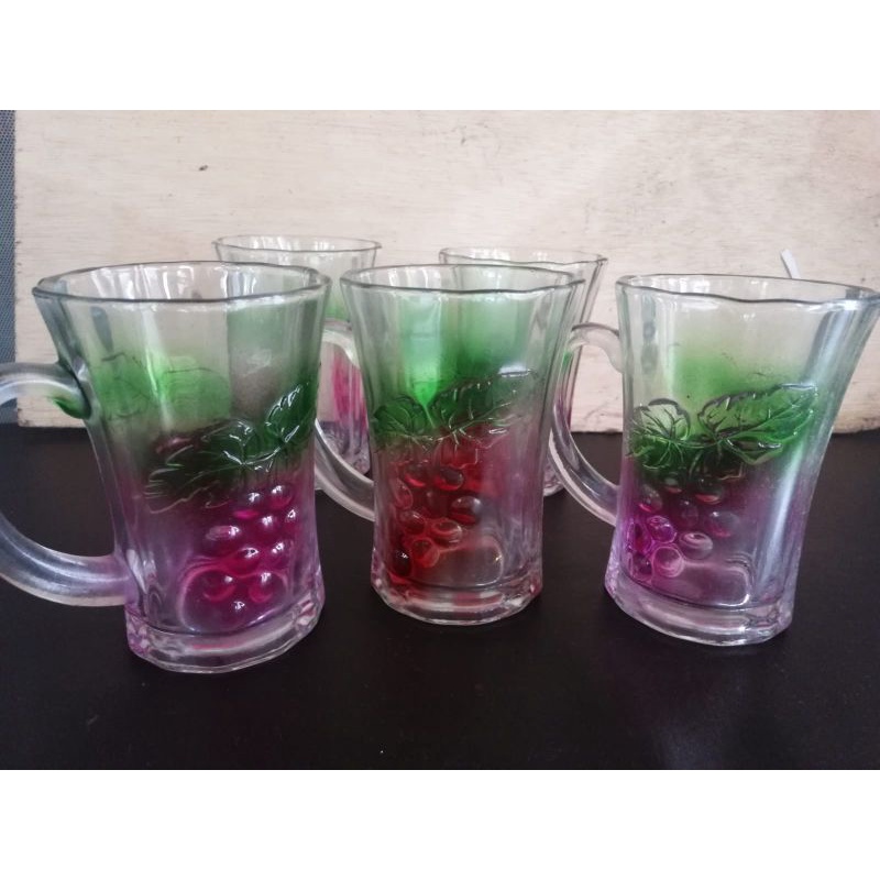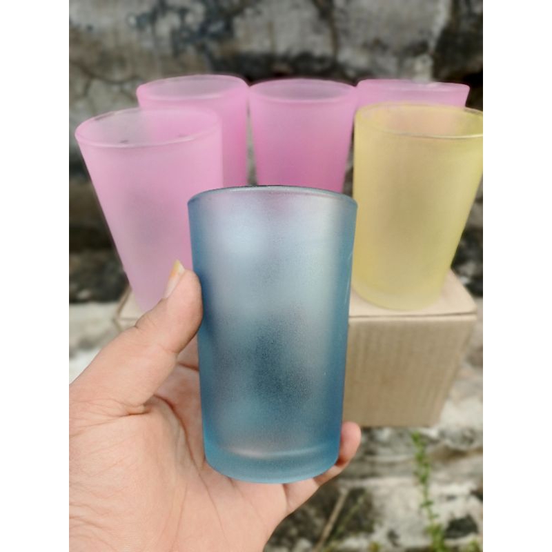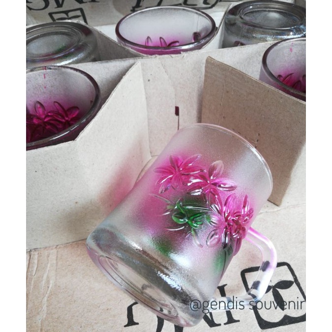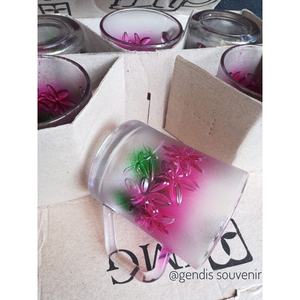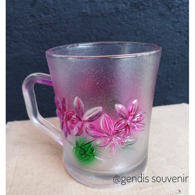 GELAS GAGANG WARNA MOTIF BATIK TIMBUL 220ML - GELAS CANGKIR KACA CANTIK - GELAS KOPI - SOUVENIR