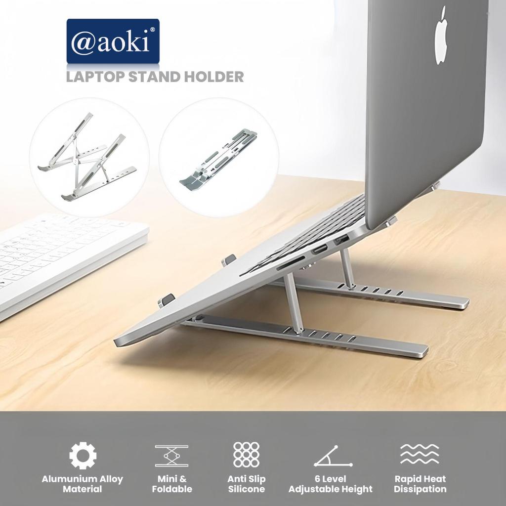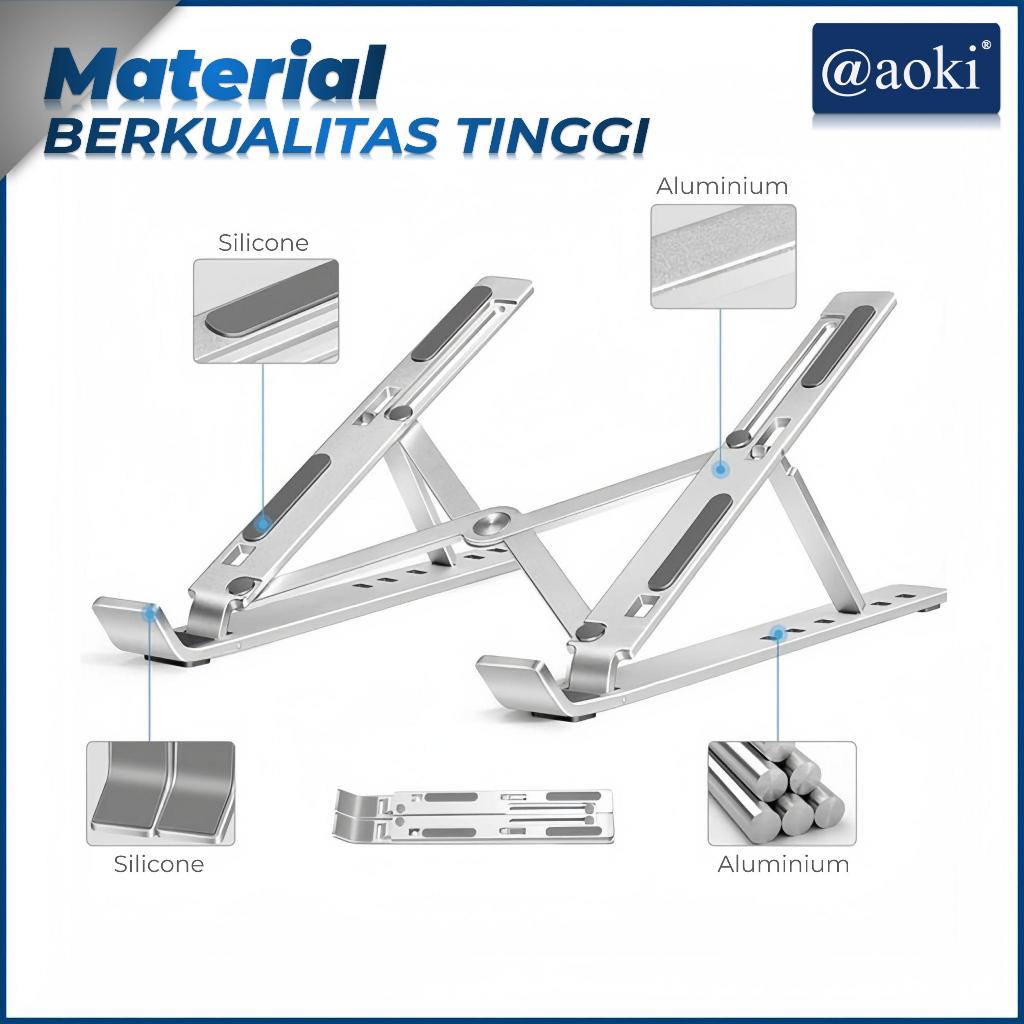 AOKI Laptop stand lipat full Aluminium yang Dapat Disesuaikan dengan 6 Sudut, Ergonomis, Portabel, Kompatibel dengan MacBook, HP, Dell, Lenovo, dan Semua Notebook Lainnya