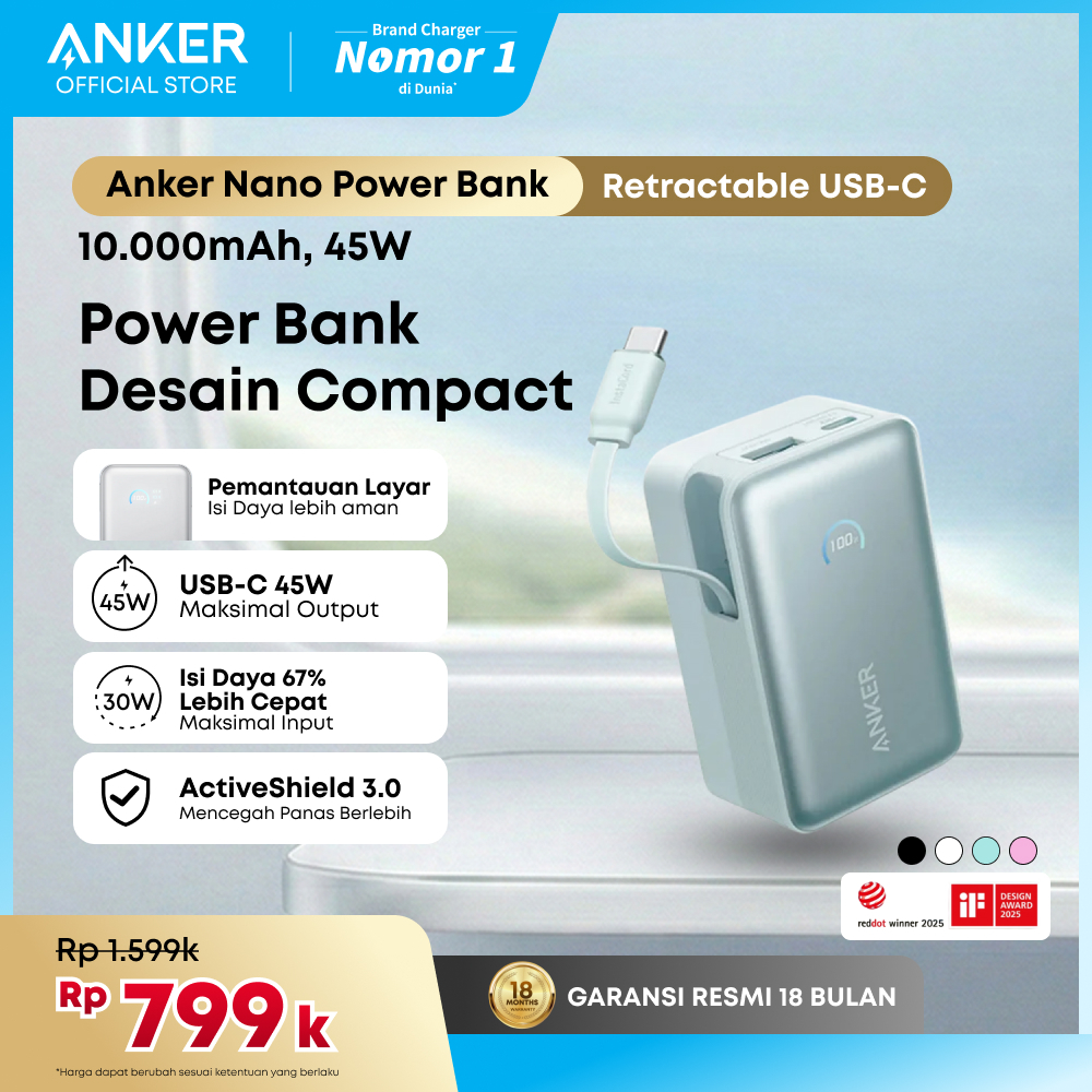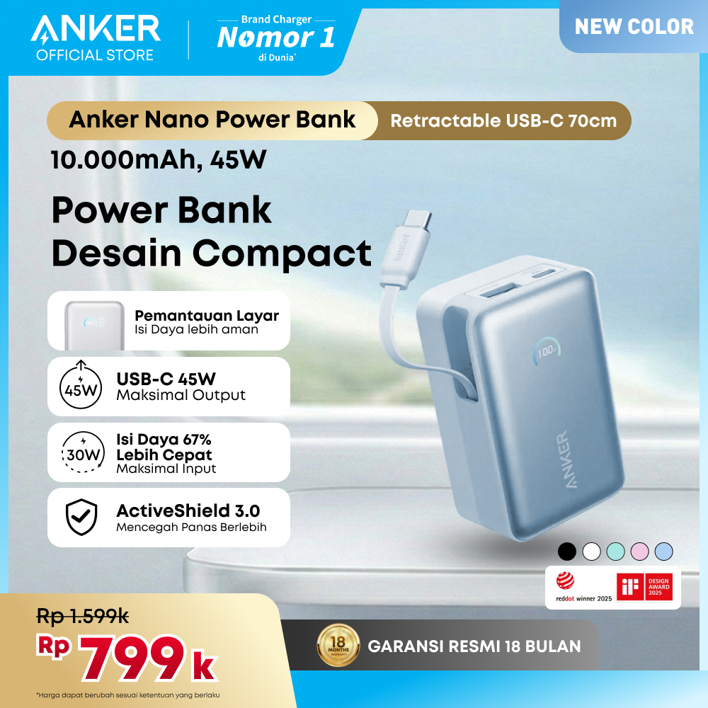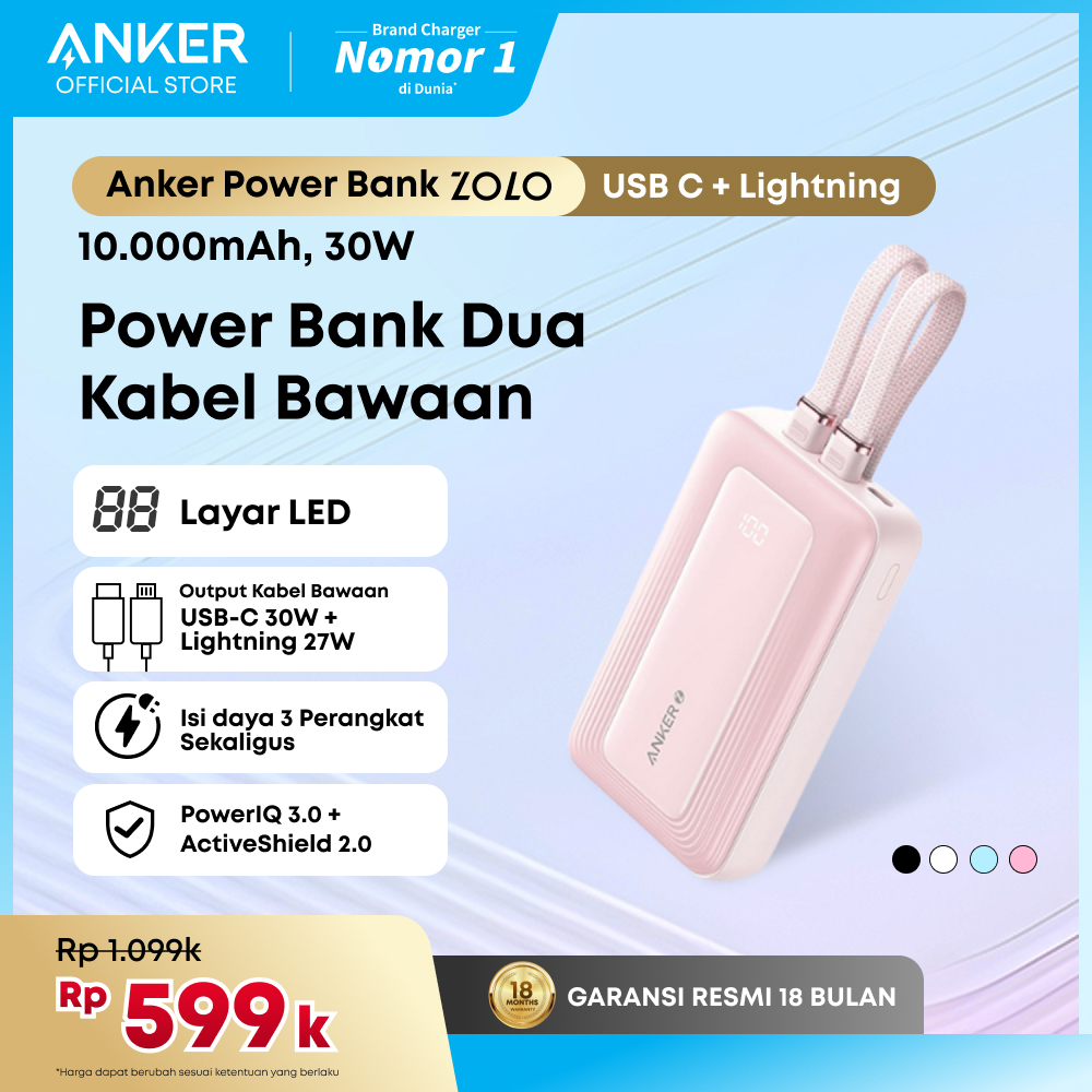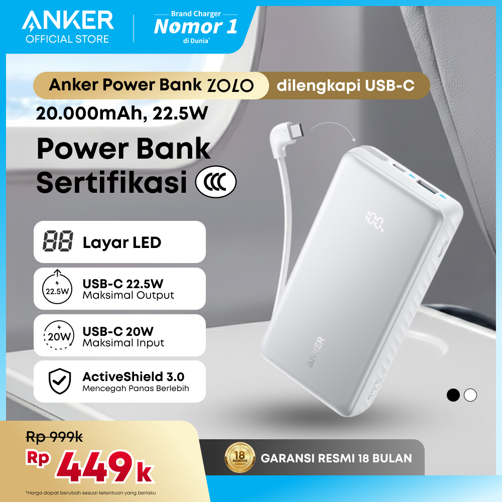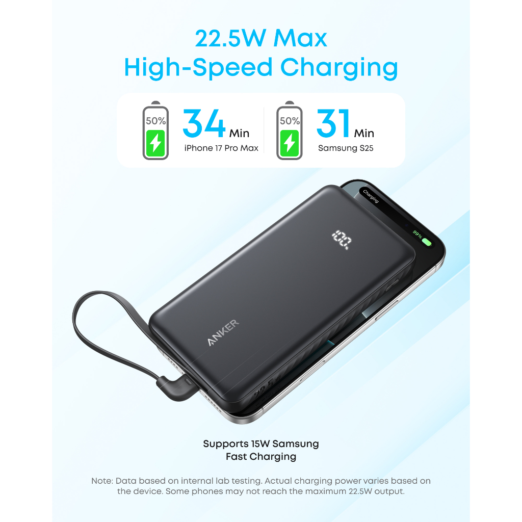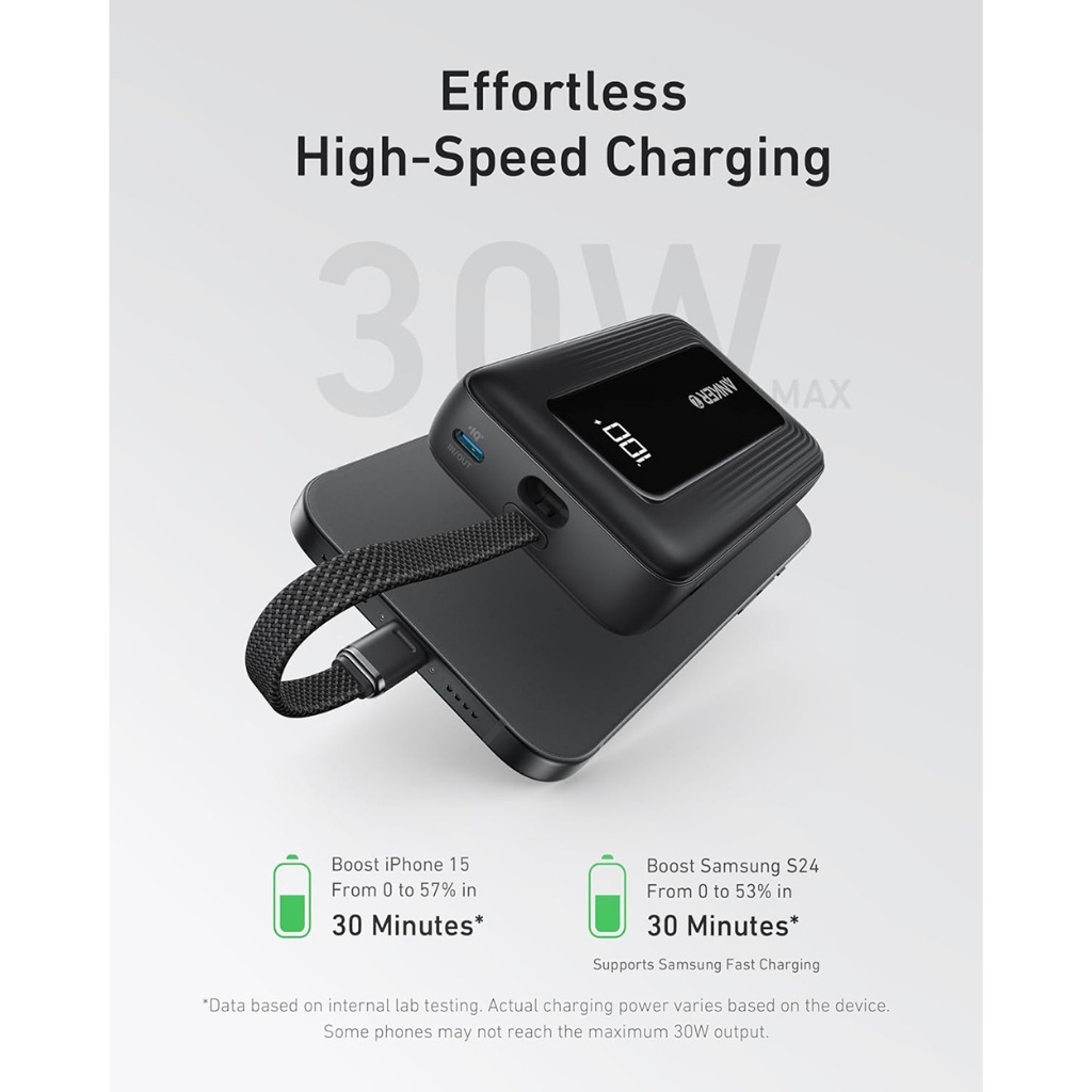 Anker Portable Power Bank 10,000mAh 20,000mAh 3 ports with Built-in Type-C Cable Type-A 22.5W 20W 30W 45W 87W Fast Charging PD - A110D / A110E / A1388 / A1384 / A1689 / A1680 / A1638 / A1383