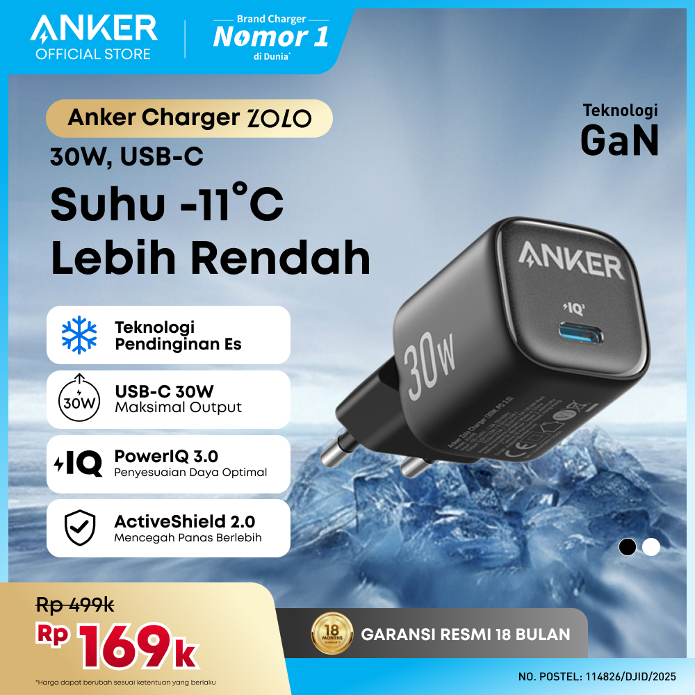Anker Zolo GaN 20W 30W Wall Charger Adaptor Kabel for iPhone 17 16 15 14 13 Samsung Ice-Cooled PD USB Type C Lightning MFi Fast Charging - A2347 / A2348 / A2633 / A2698 / A2699 / B2699