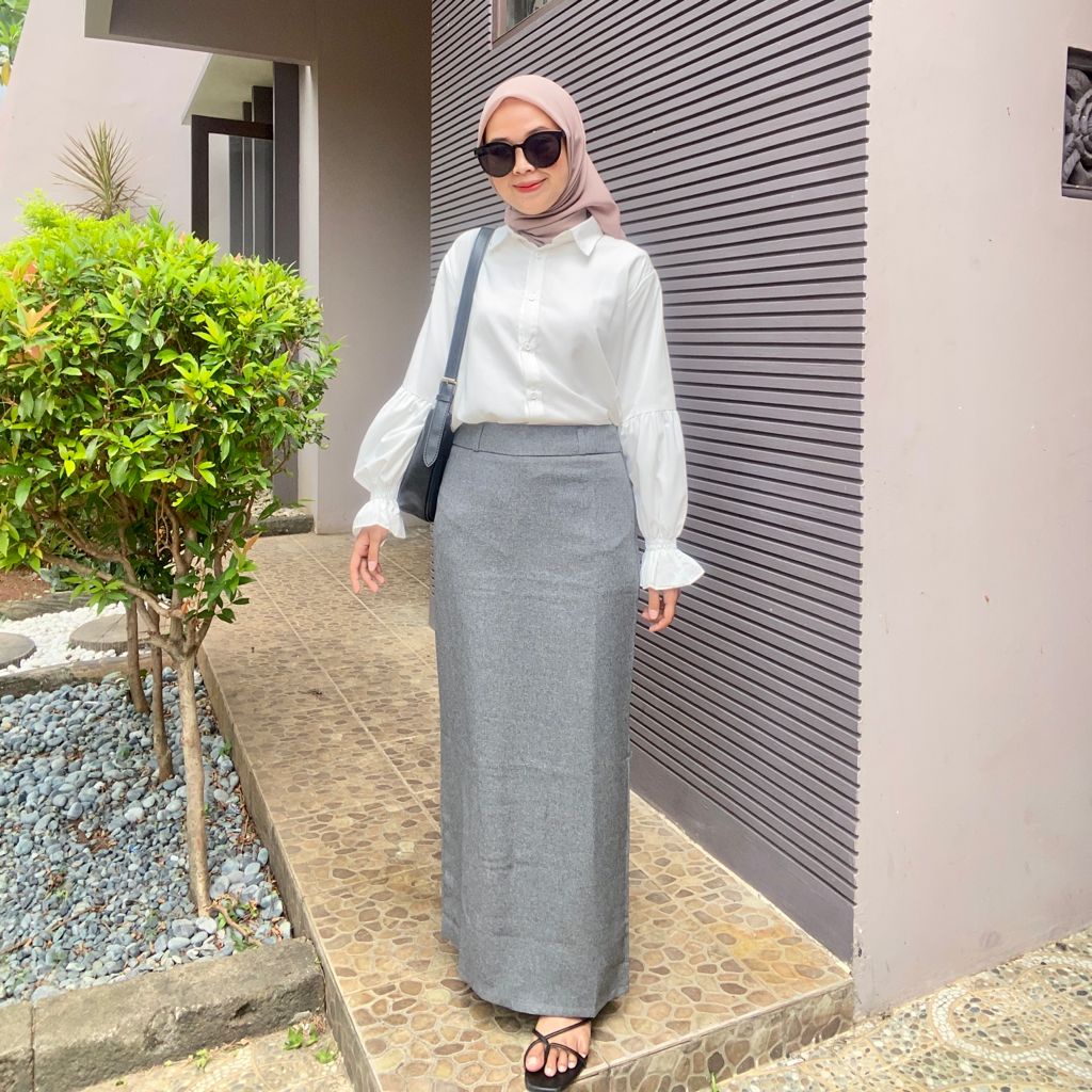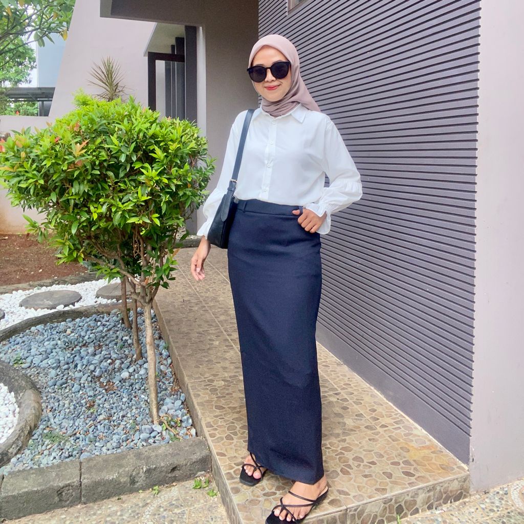 HANAKO 05 | Rok Span Belah Rempel | Biron | Rok Kerja