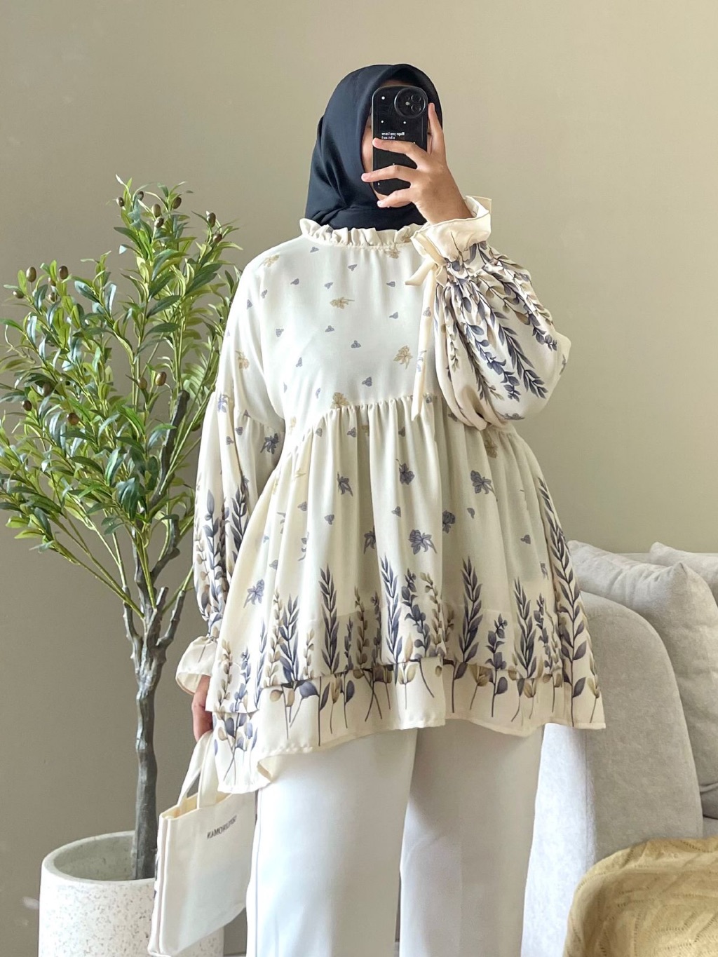 HANAKO 14 | Tunik Batwing Rempel Motif | Atasan Wanita