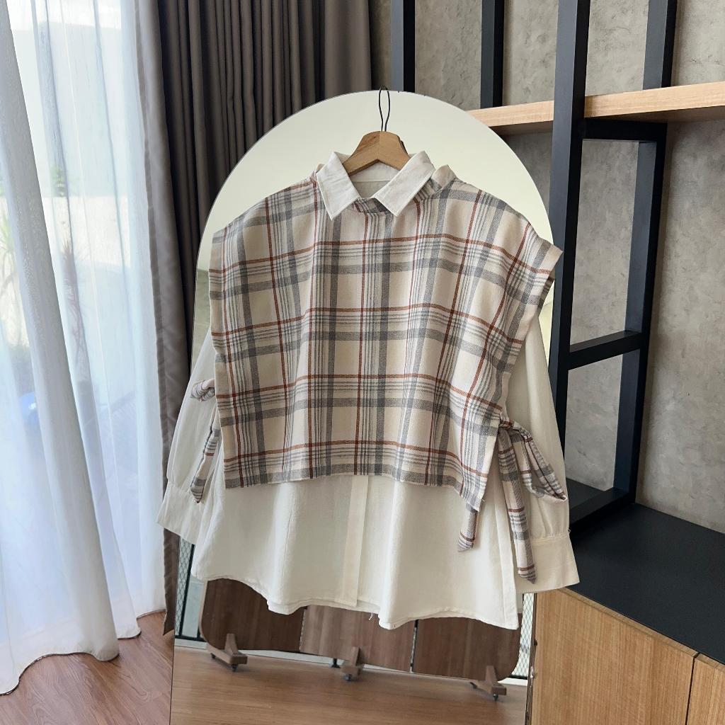 HANAKO 113 | Gingham Vest Dan Set Kemeja | Rompi Flanel