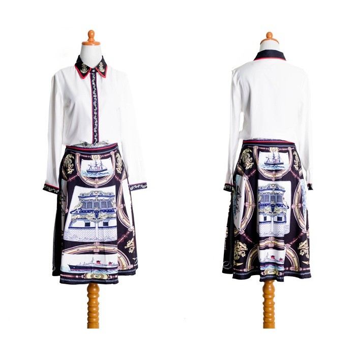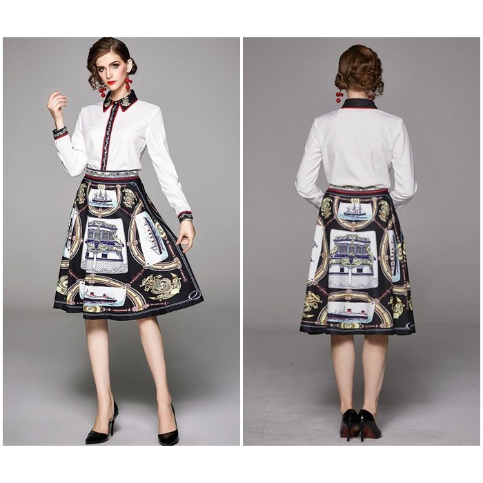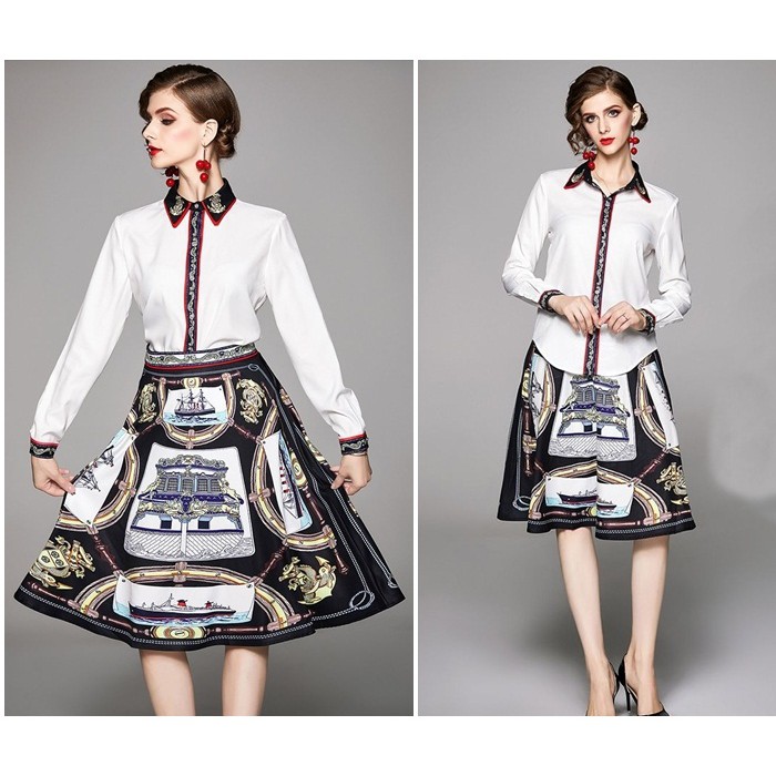 AB751975 Setelan Baju Atasan Kemeja Rok Midi Wanita Putih Korea Import