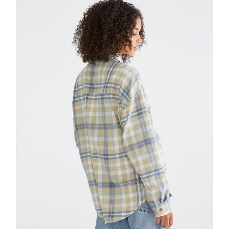 Kemeja Flanel Cewe Earth Tone Aeropostale Atasan Wanita Aesthetic Lengan Panjang Kotak Kotak Flanel premium