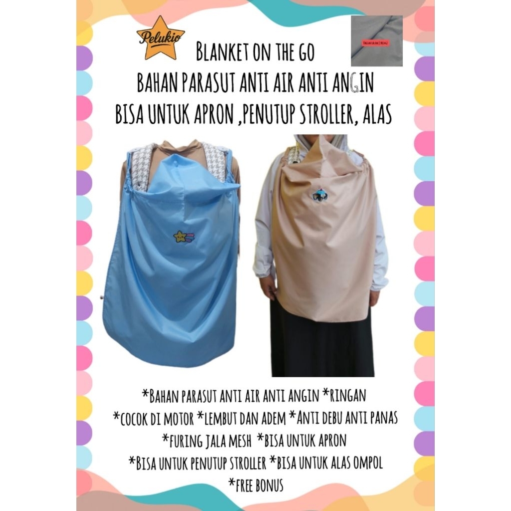 Bahan Parasut Pelukio Blanket On The Go selimut bayi topi hoodie bayi Bahan Parasut Anti Air Anti Angin cocok buat di motor
