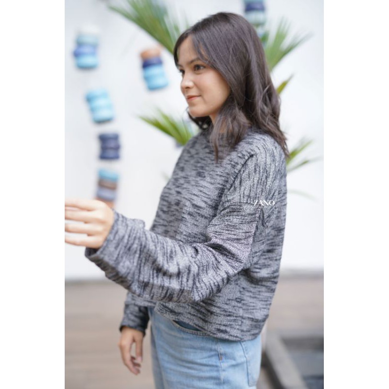 ZANO BASICS Sweater Crop Silver Buckle Texture