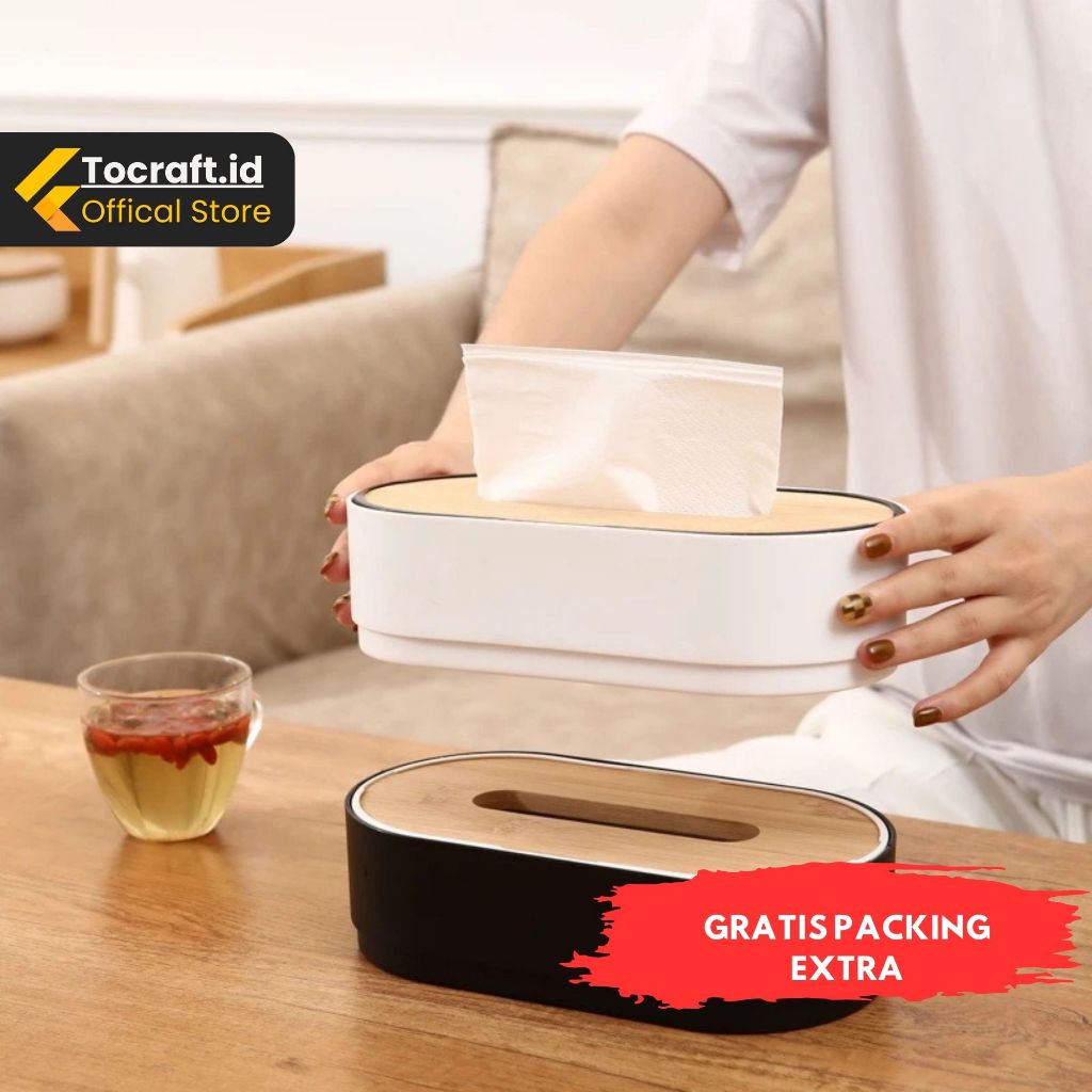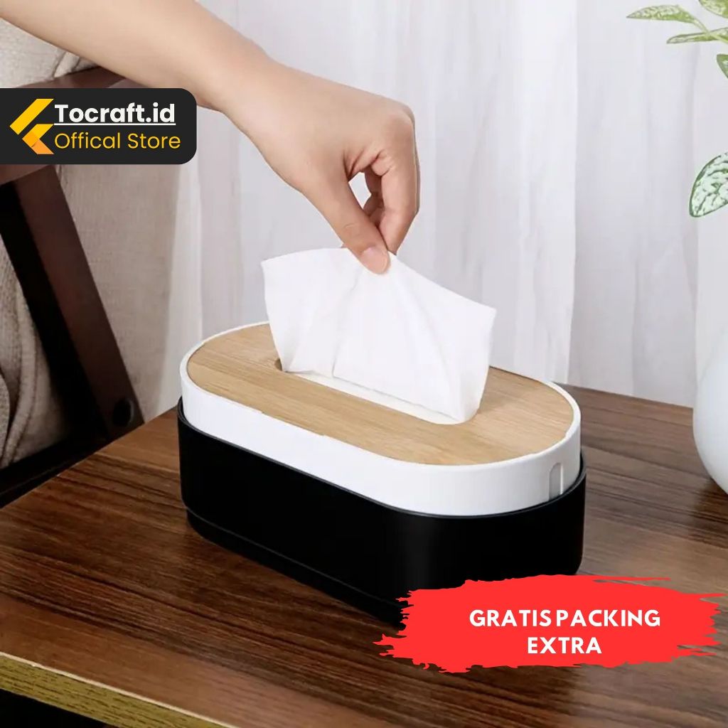 TCID Tempat Tissue Kosmetik Bulat Kotak Tisu Kayu Oval Ruangan Kamar Tidur Aesthetic Dengan Tutup