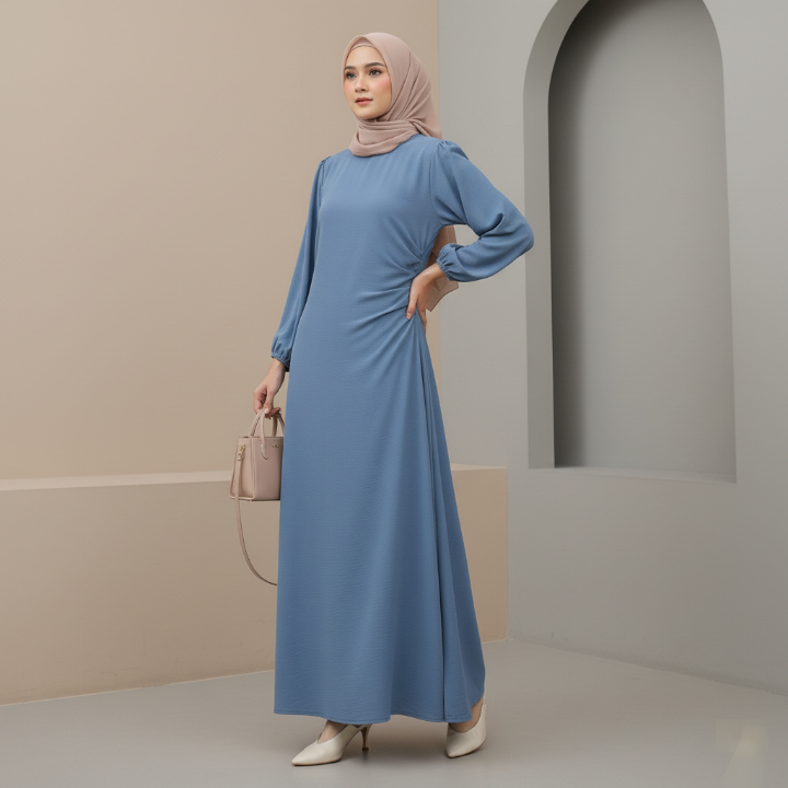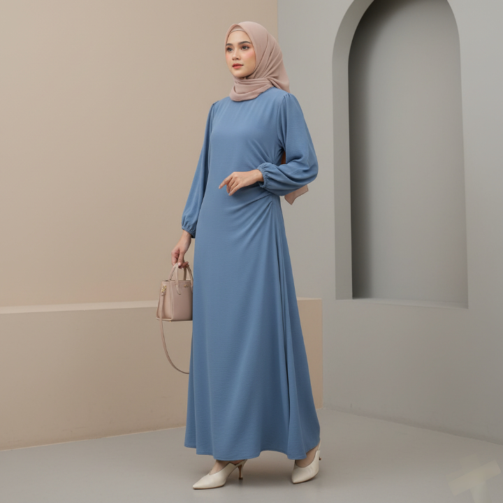Raiya Dress Lebaran 2026 Gamis Wanita Muslim Simple Elegan - Dress Polos Remaja Kekinian Terbaru