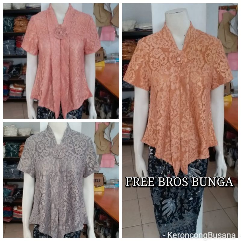 Kebaya Floy Brokat Pendek FOIL EMAS bahan tebal full furing adem busui KeroncongBusana (BPDK)