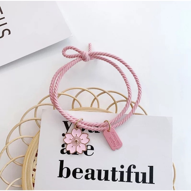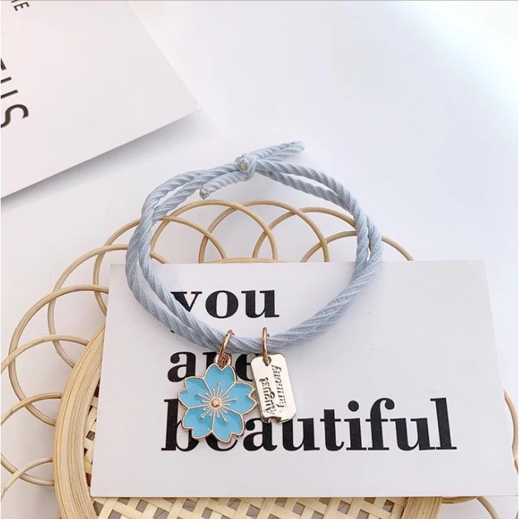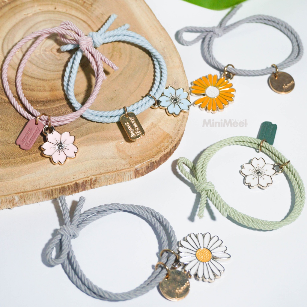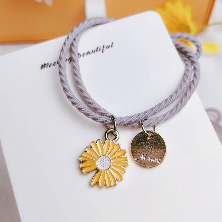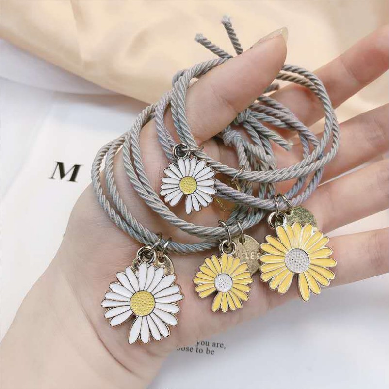 Gelang ikat rambut Daisy Sunflower Sakura elastis awet Gaya Korea