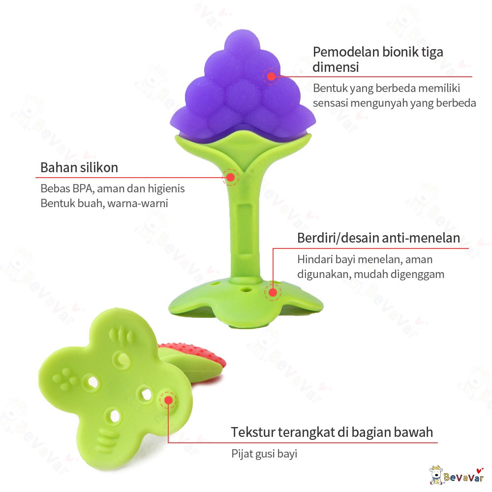 BEVAVAR Teether bayi berbentuk buah - Mainan gigitan bayi BPA Free