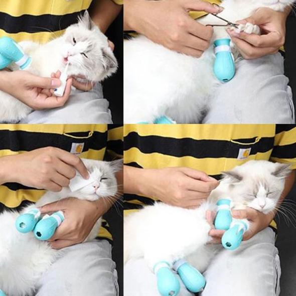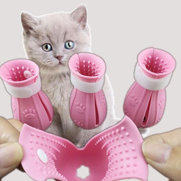 Pelindung Kaki Kucing Sarung Kaki Kucing Sepatu kucing Lembut Karet - Merah Muda