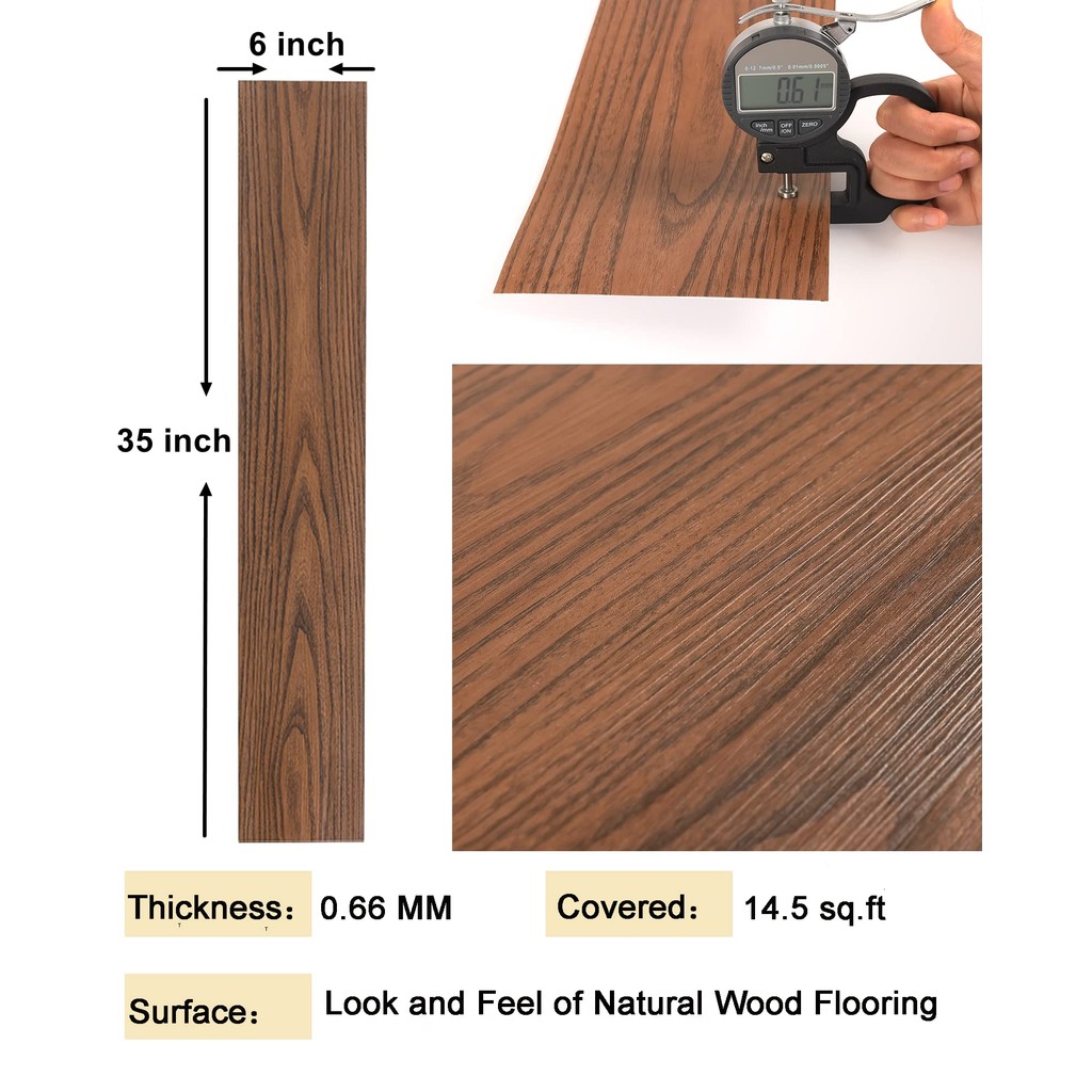 Hoptech - Ubin Lantai Vinyl Serat Kayu Tahan Air DIY Perekat Diri untuk Kamar Mandi & Ruangan
