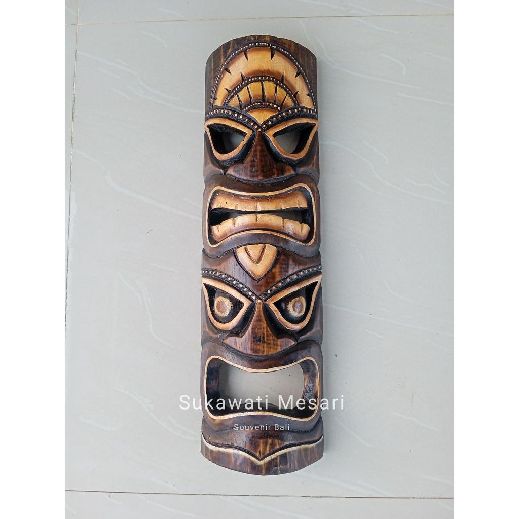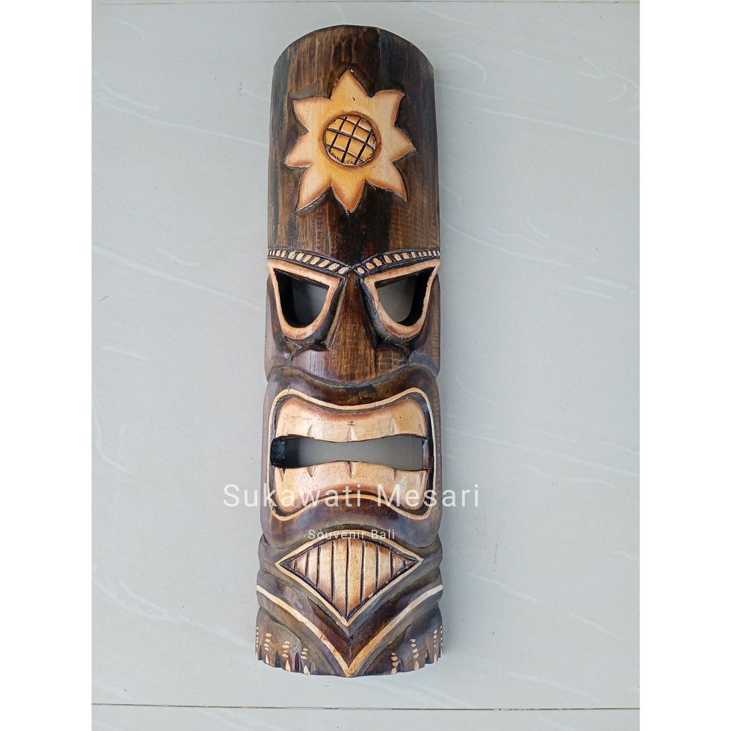 Dekorasi Topeng Tiki Suku Asmat Etnik Kayu 50cm Kerajinan Tangan Handmade Khas Bali