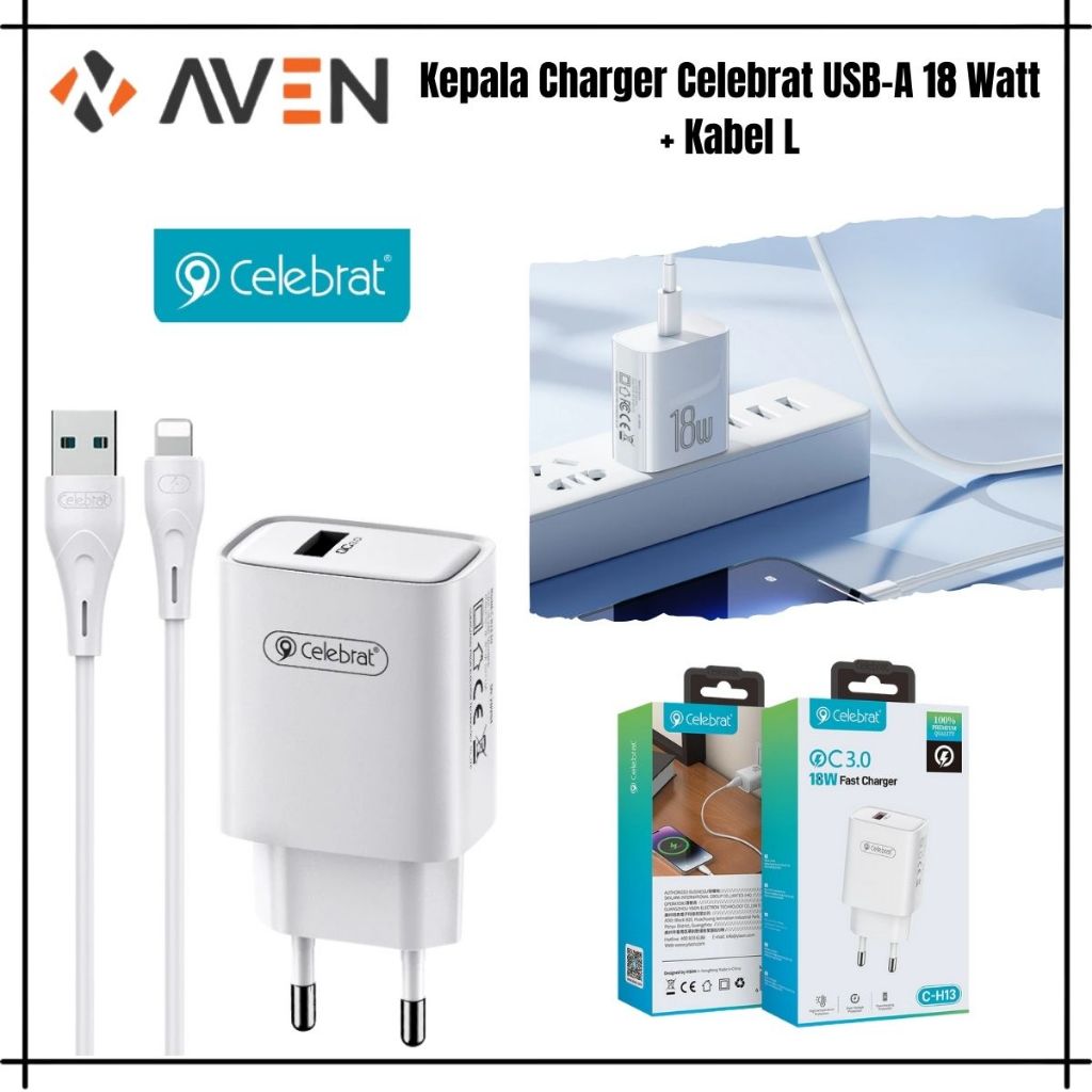 AVEN Adaptor Kepala Charger Celebrat C-H13 18W SET Kabel Lightning Fast Charging High Quality
