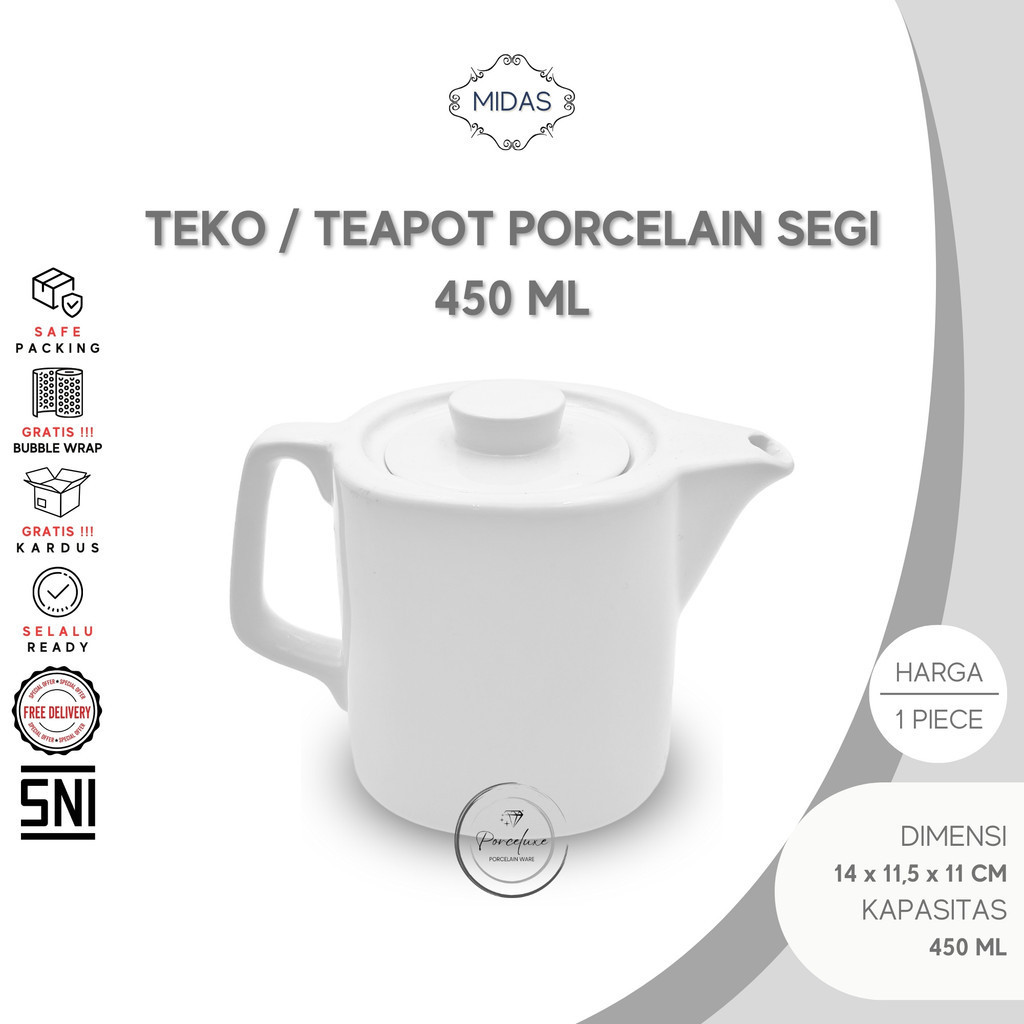 Midas Teko Porselen Segi Putih Glossy 450 ml Teapot Teh Tea Kopi Coffee Porcelain Keramik Aesthetic