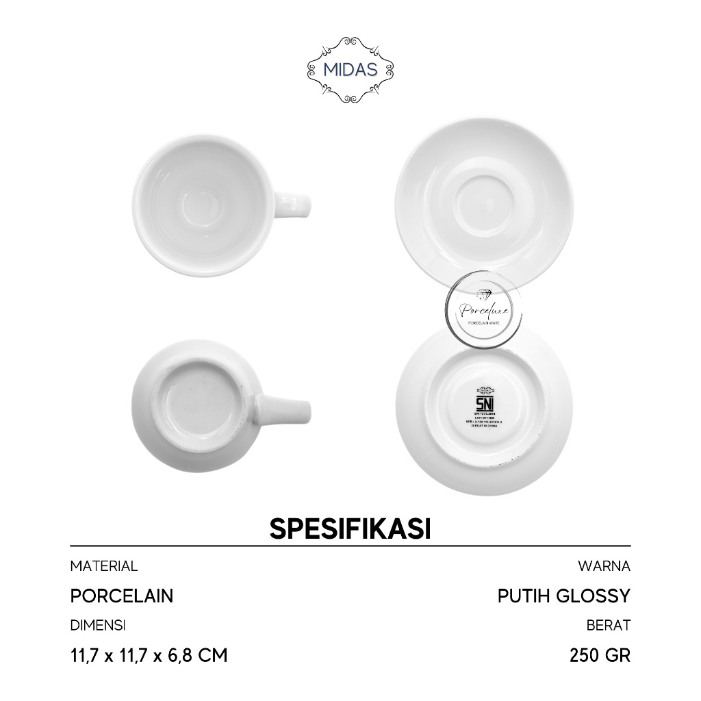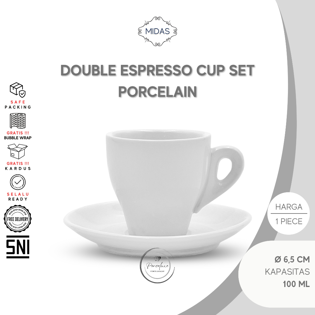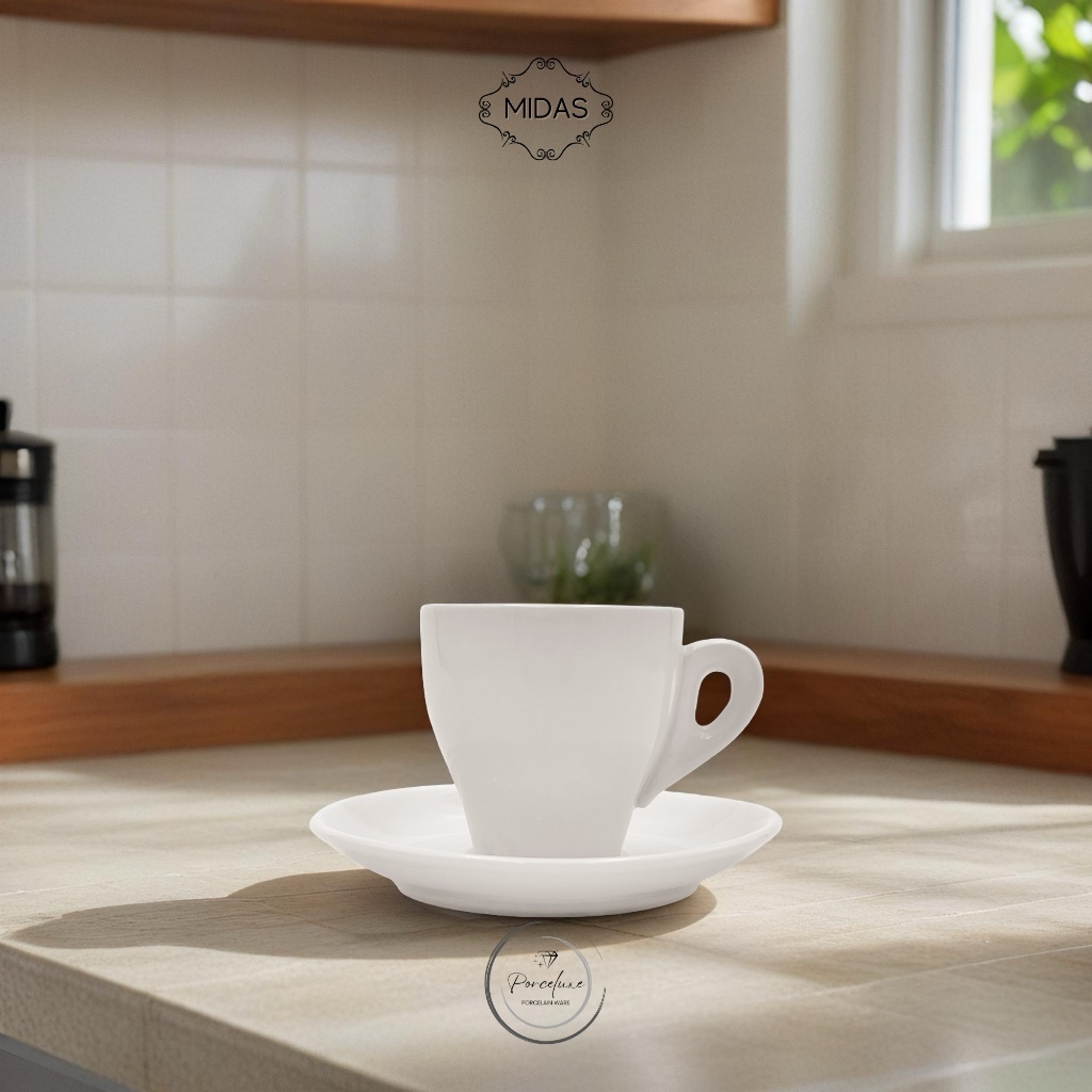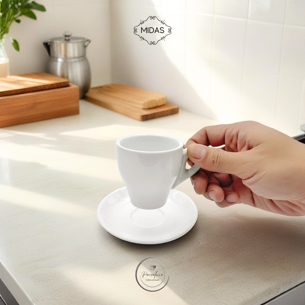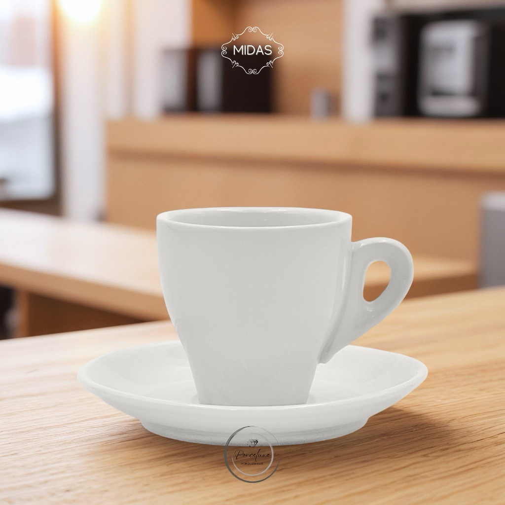 Midas Cangkir Set Porselen Double Espresso Cup 17-329 6,5 cm Putih 100 ml Gelas Kopi Coffee Keramik