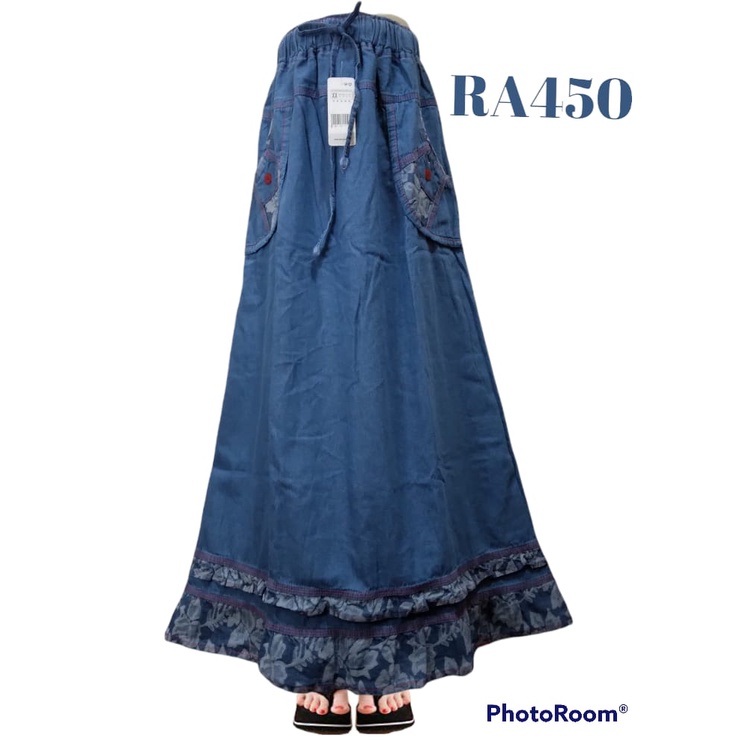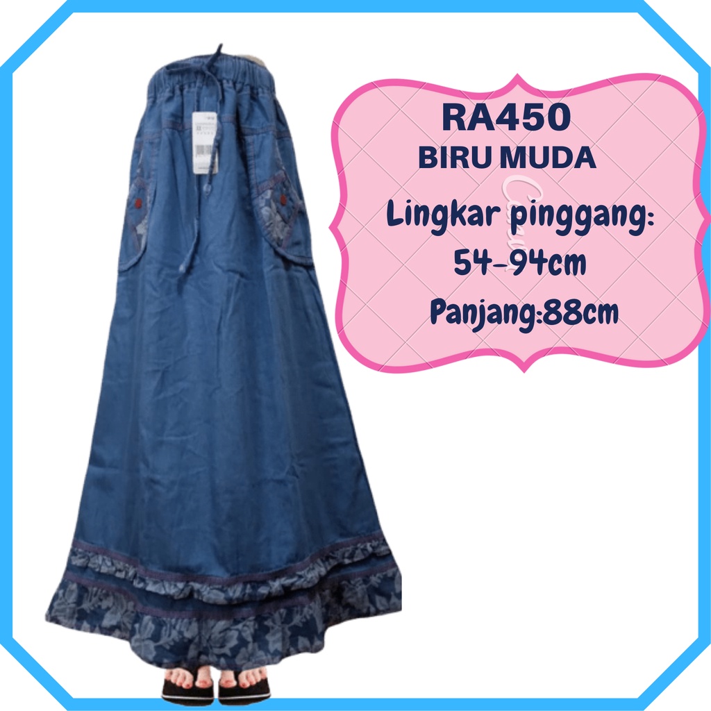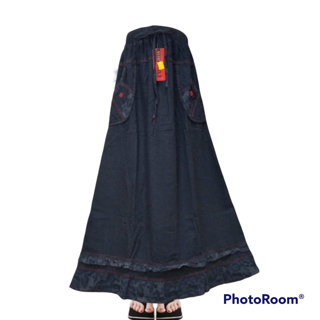 Rok Anak Bahan Jeans Panjang Motif Bunga Usia 9-12 tahun