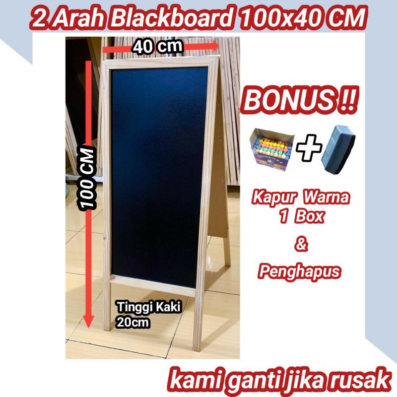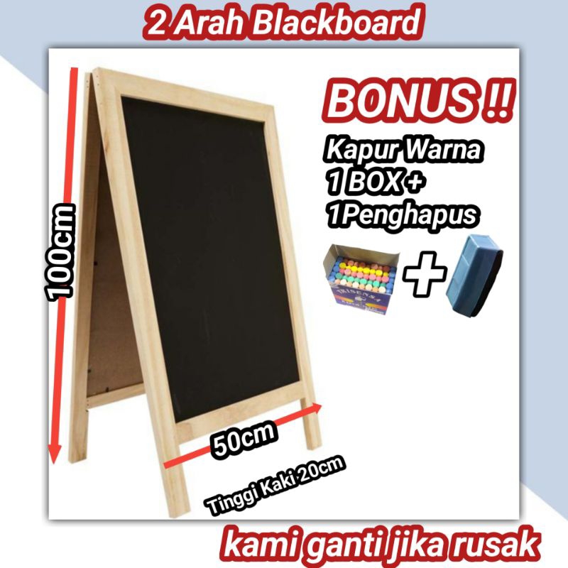 PAPAN TULIS KAPUR 2 ARAH (Gratis kapur warna 1 box + penghapus)| PAPAN TULIS BLACKBOARD, papan tulis hitam