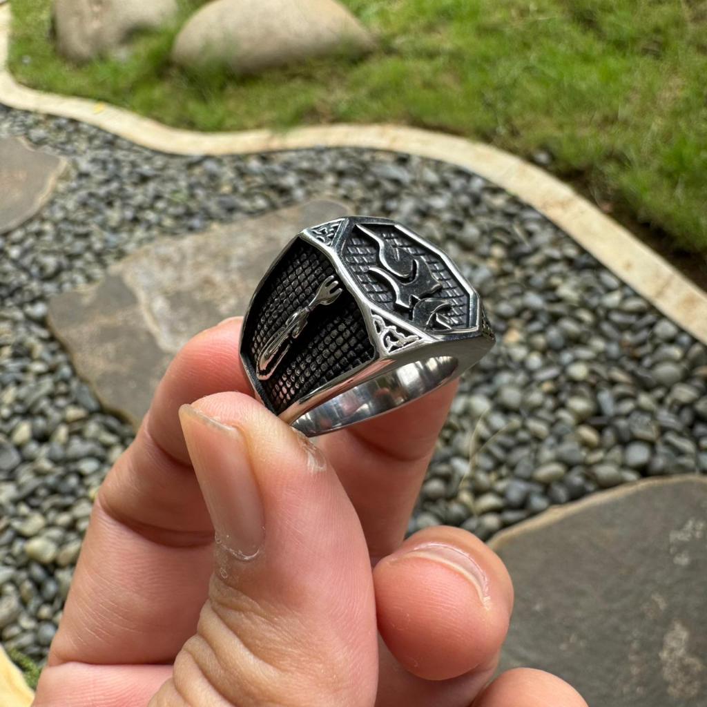Cincin King Ming Aksara China Stainless Premium Beier / Cincin Pria Tulisan China Aksara Tradisional Baja Tahan Karat / Aksesoris Cincin Laki Laki Gambar Pedang / Tulisan China Ancient Font Ring Kualitas Tinggi / Cincin Tebal Besar Lebar Macho Keren