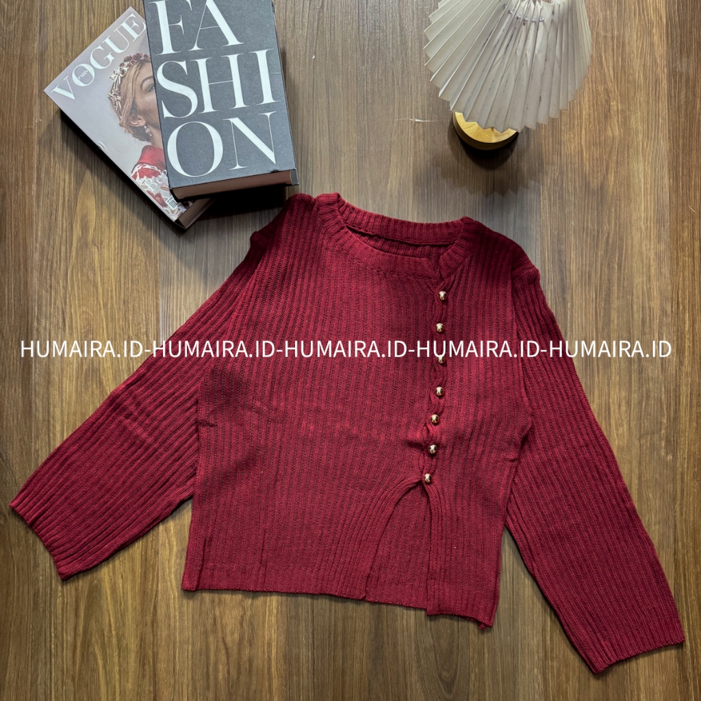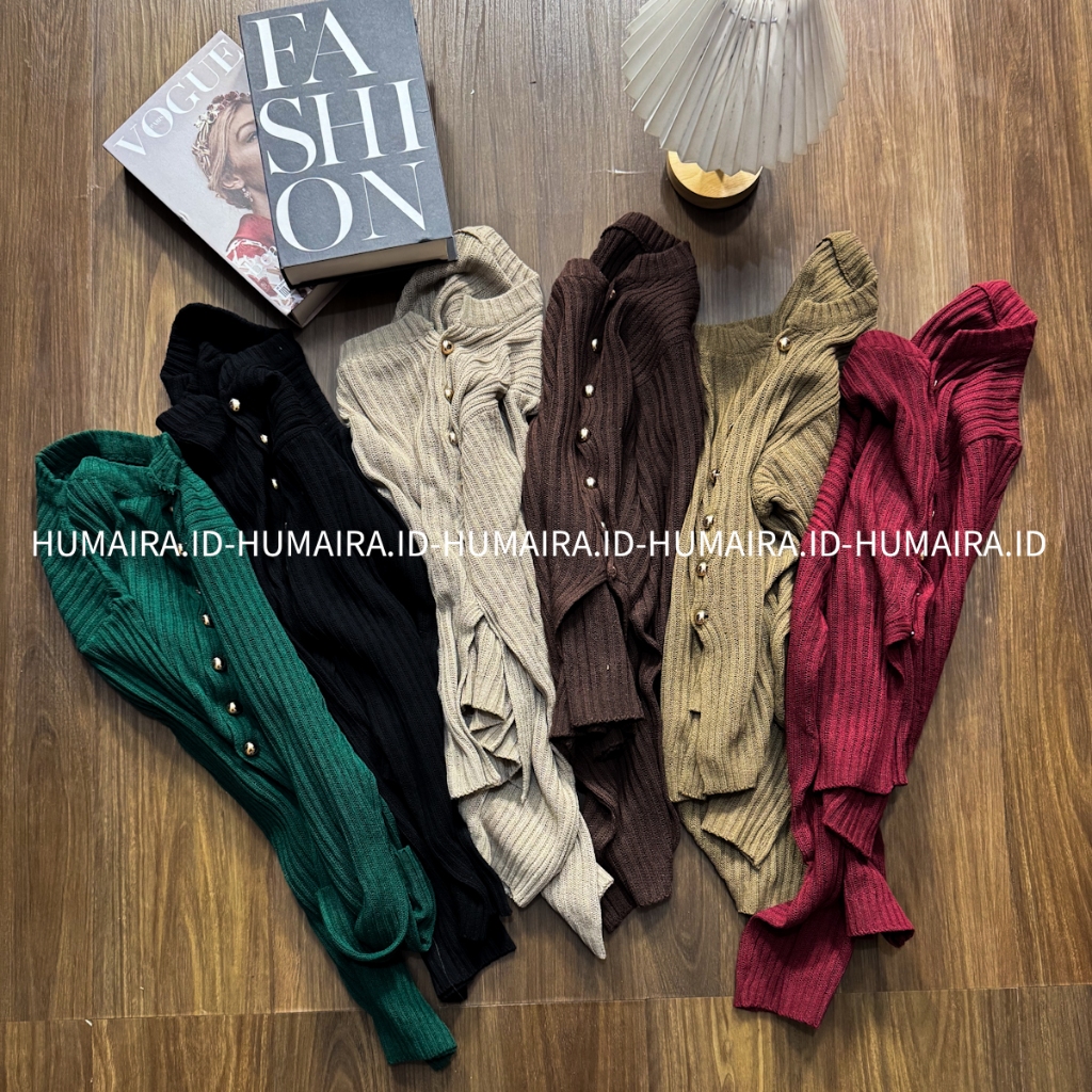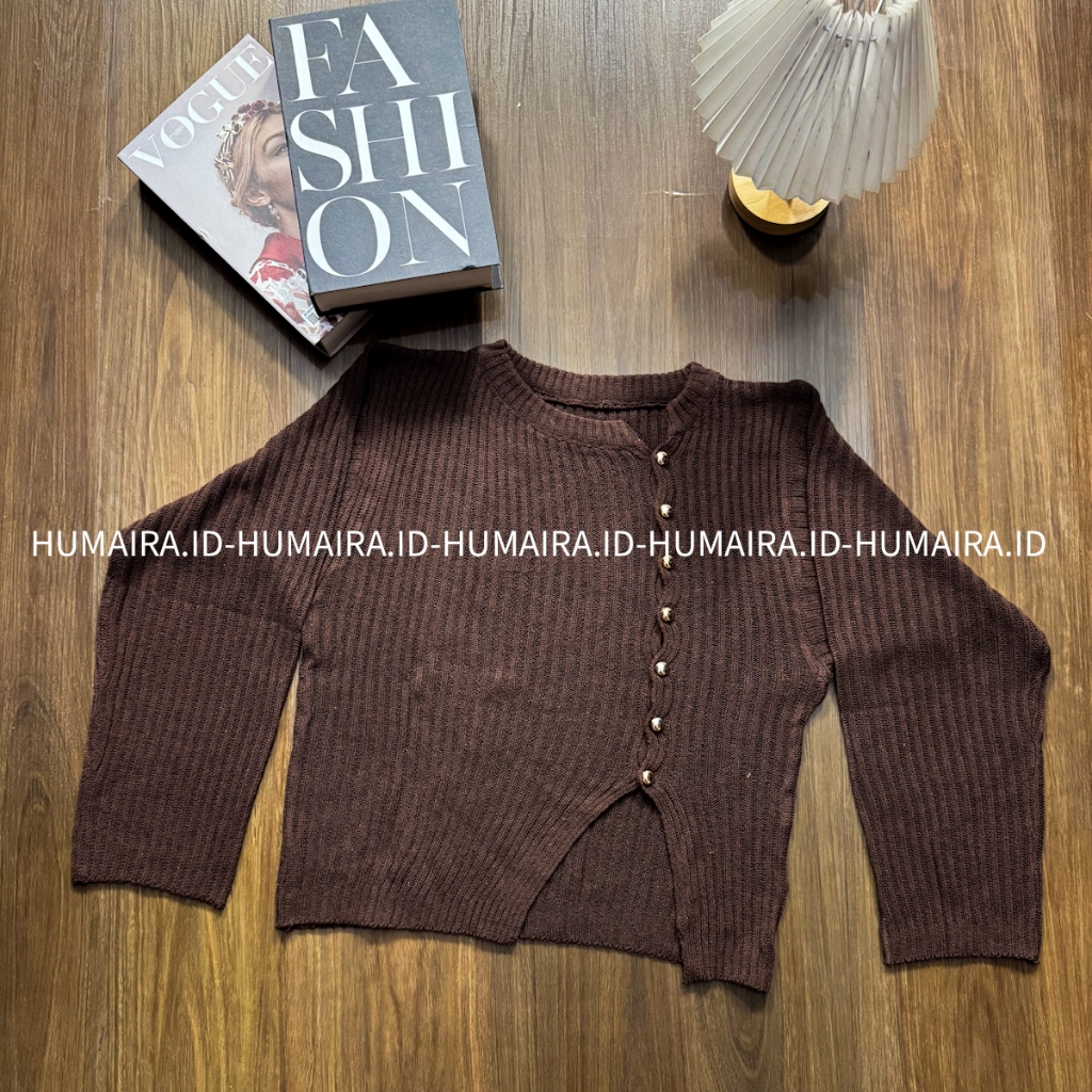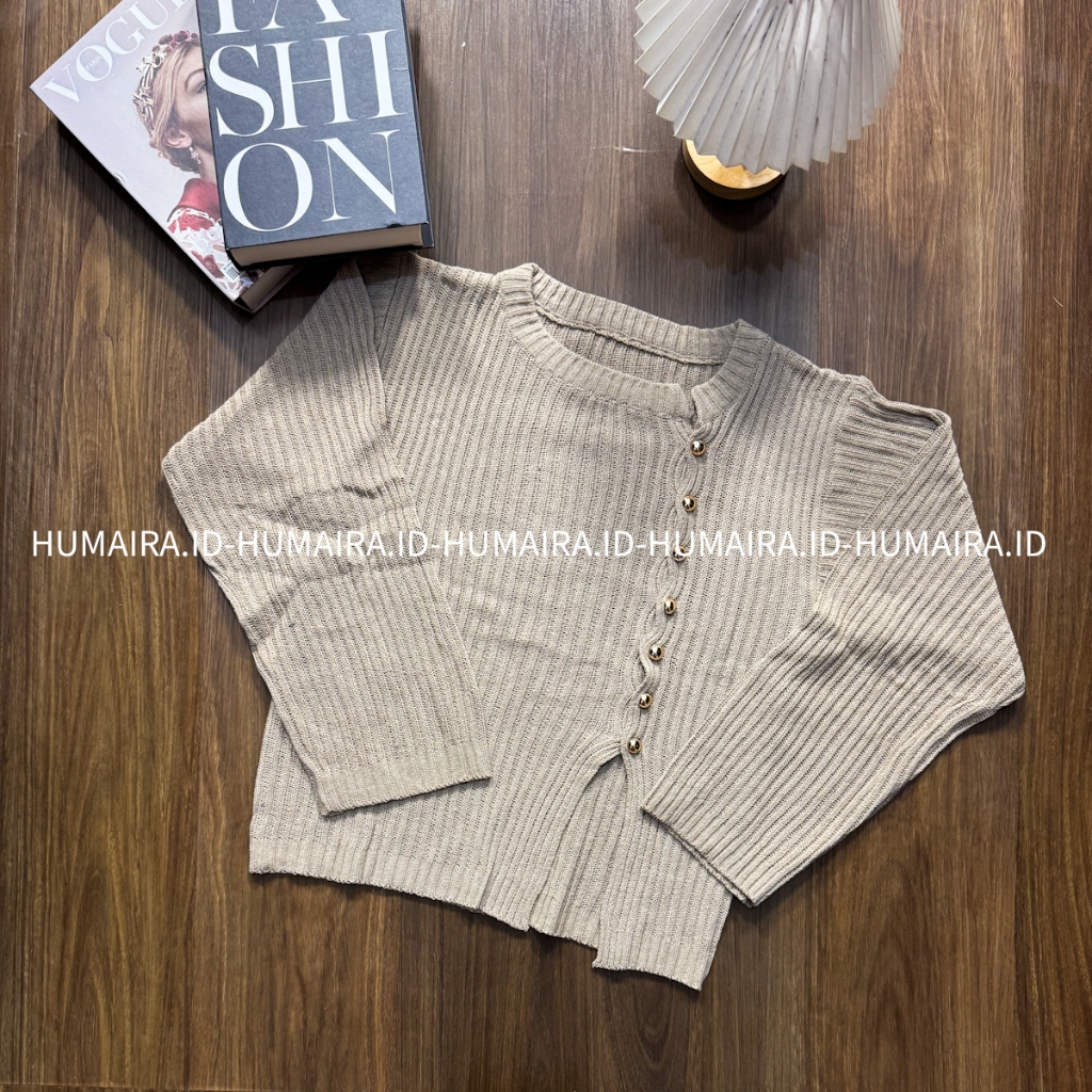 Nala Cardigan Basic Knitwear Wanita Kancing pinggir Jamur Silver Cardigan Rajut Oversize Panjang Atasan Tebal