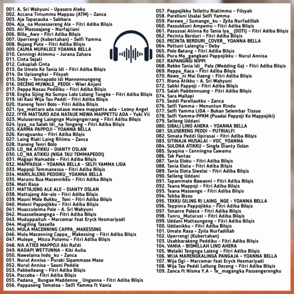 KASET MP3 109 LAGU BUGIS TERVIRAL 2025 SELFI YAMMA FULL ALBUM - KASET MP3 LAGU BUGIS TERBARU - KASET LAGU CD MP3 SELFI YAMMA BUGIS - KASET LAGU BUGIS 2025 - KASET CD MP3 TERBARU